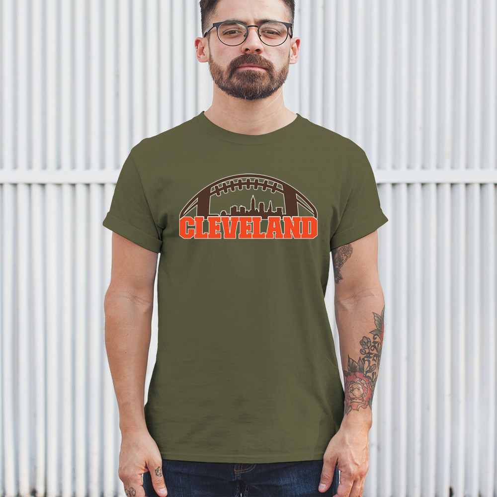 Unleash your Cleveland spirit with this standout football-themed design, featuring the city's skyline in bold detail. Ideal for game day celebrations, tailgate parties, or casual wear, this design embodies the energy and pride of Cleveland's sports culture. Whether you're a lifelong fan or just love the city's vibe, this is a must-have for every Cleveland supporter.