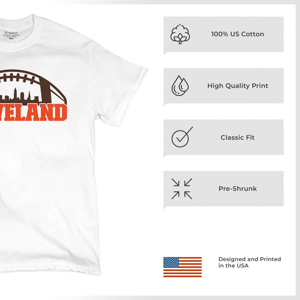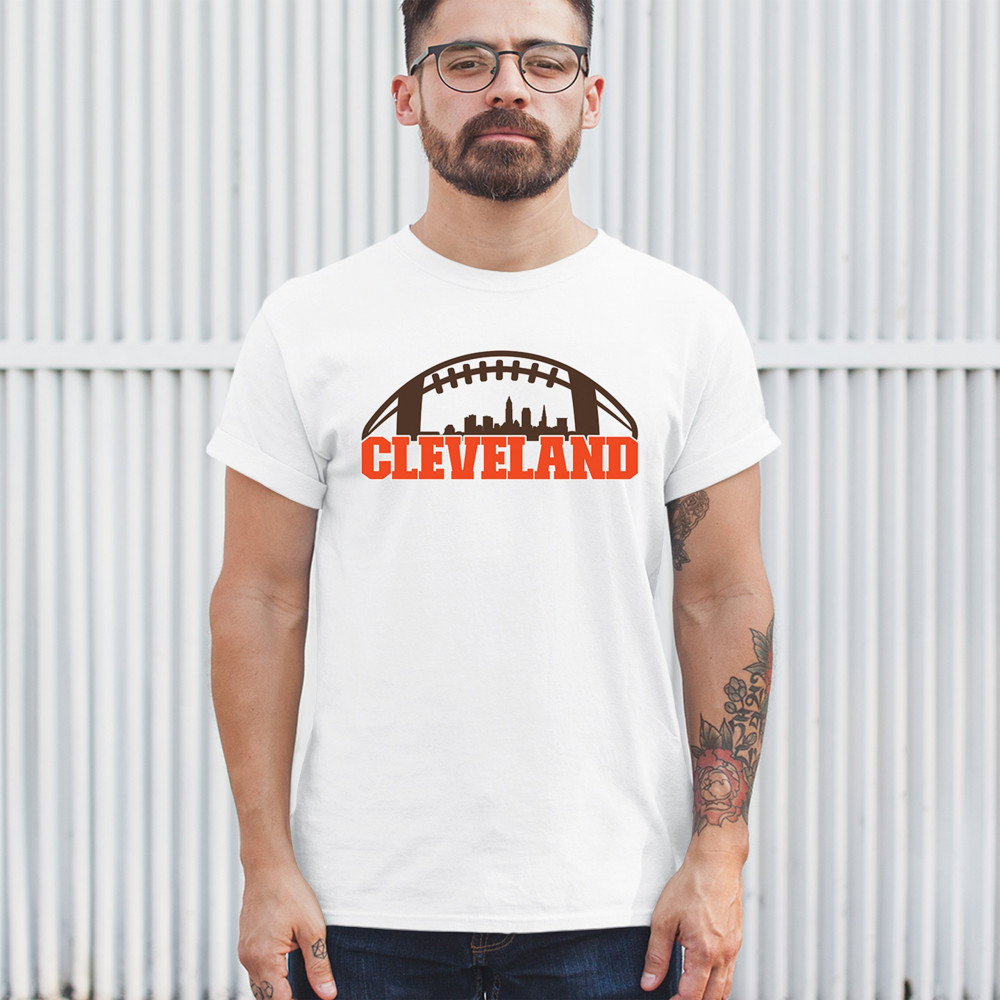 Unleash your Cleveland spirit with this standout football-themed design, featuring the city's skyline in bold detail. Ideal for game day celebrations, tailgate parties, or casual wear, this design embodies the energy and pride of Cleveland's sports culture. Whether you're a lifelong fan or just love the city's vibe, this is a must-have for every Cleveland supporter.