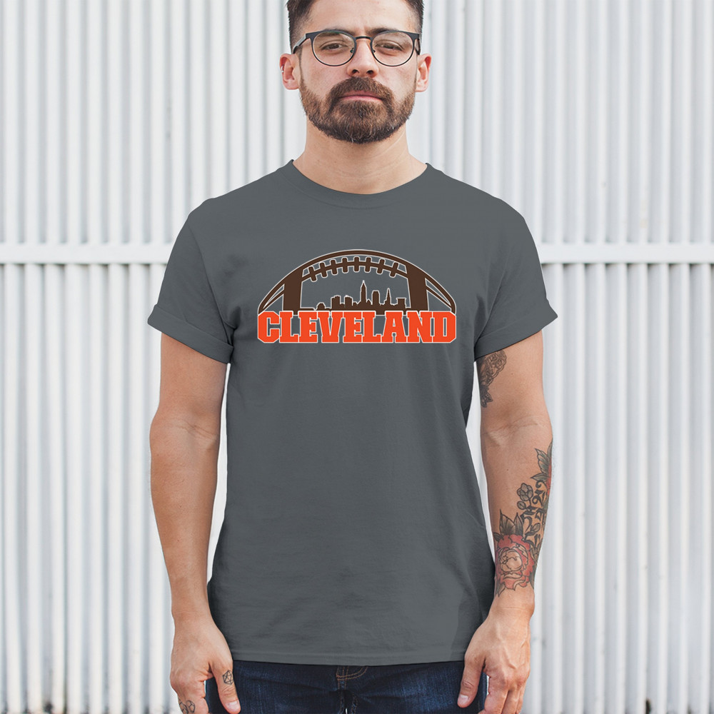 Unleash your Cleveland spirit with this standout football-themed design, featuring the city's skyline in bold detail. Ideal for game day celebrations, tailgate parties, or casual wear, this design embodies the energy and pride of Cleveland's sports culture. Whether you're a lifelong fan or just love the city's vibe, this is a must-have for every Cleveland supporter.
