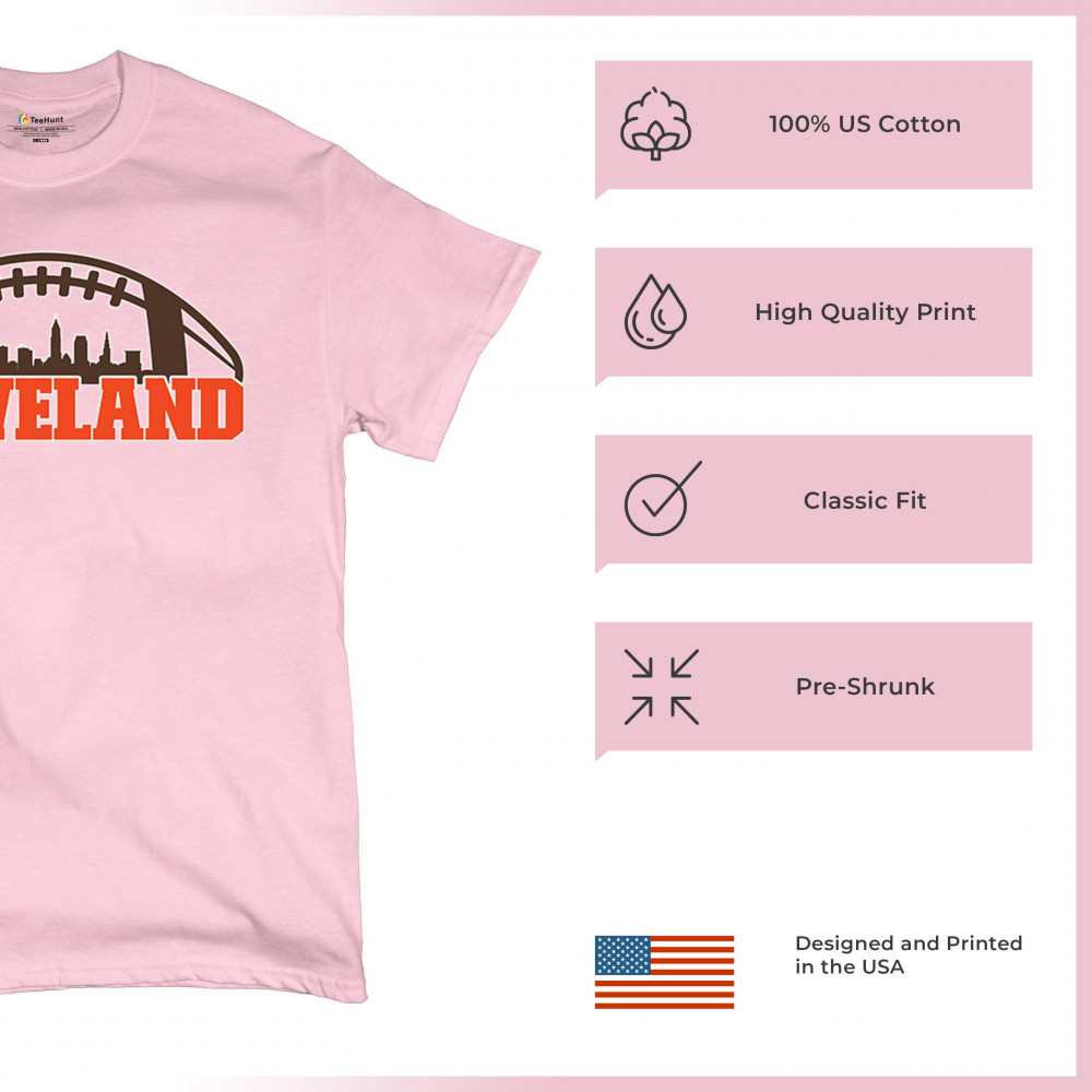 Unleash your Cleveland spirit with this standout football-themed design, featuring the city's skyline in bold detail. Ideal for game day celebrations, tailgate parties, or casual wear, this design embodies the energy and pride of Cleveland's sports culture. Whether you're a lifelong fan or just love the city's vibe, this is a must-have for every Cleveland supporter.