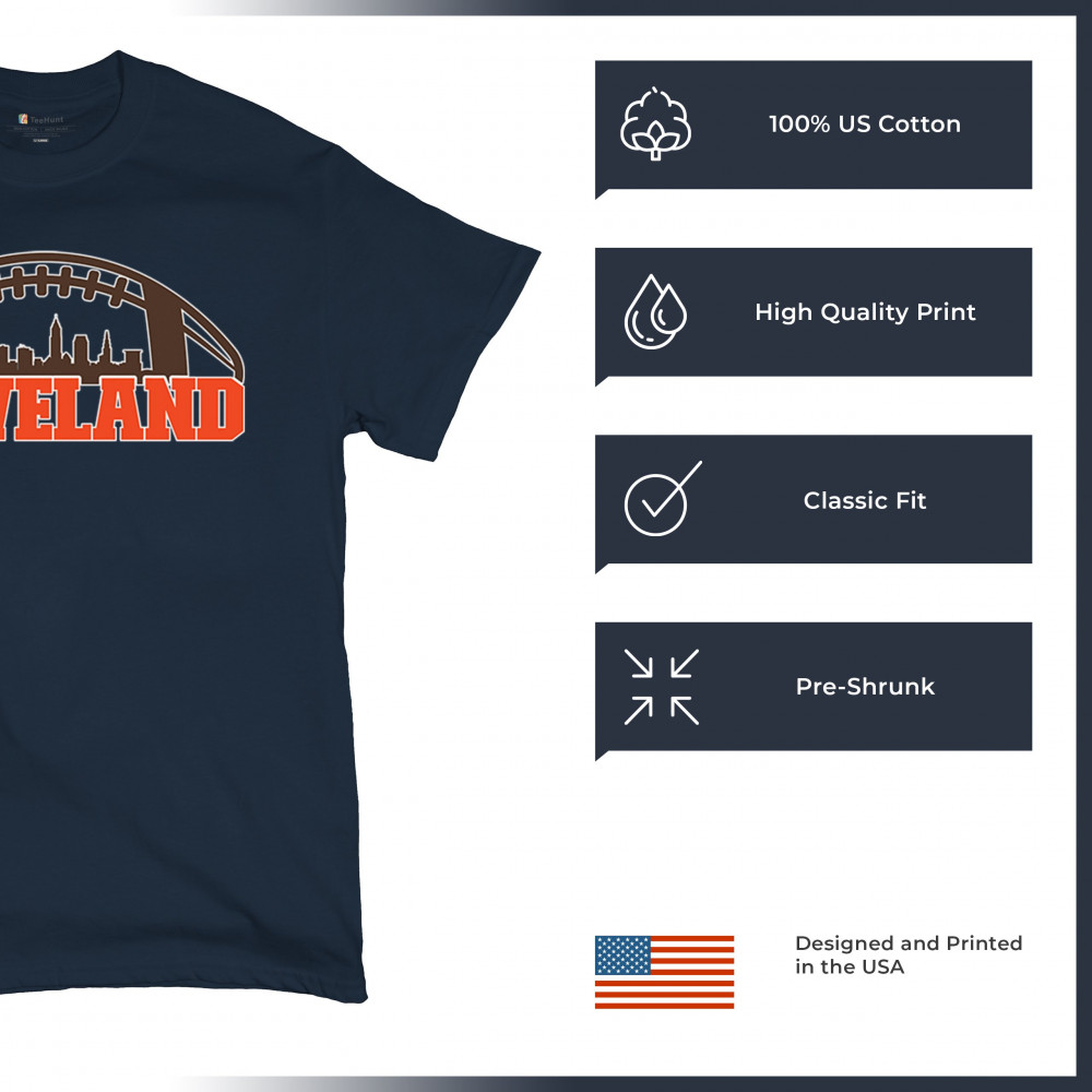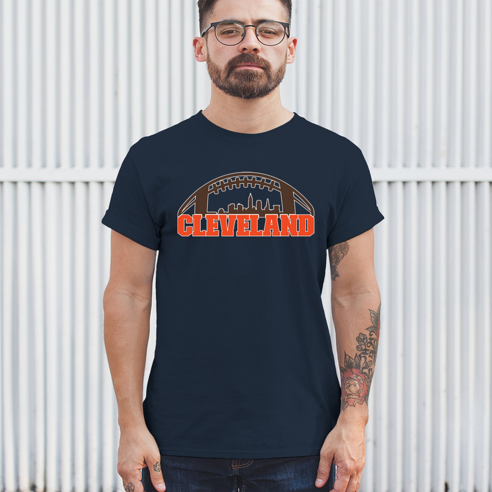 Unleash your Cleveland spirit with this standout football-themed design, featuring the city's skyline in bold detail. Ideal for game day celebrations, tailgate parties, or casual wear, this design embodies the energy and pride of Cleveland's sports culture. Whether you're a lifelong fan or just love the city's vibe, this is a must-have for every Cleveland supporter.