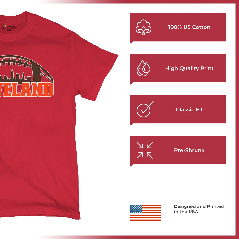 Unleash your Cleveland spirit with this standout football-themed design, featuring the city's skyline in bold detail. Ideal for game day celebrations, tailgate parties, or casual wear, this design embodies the energy and pride of Cleveland's sports culture. Whether you're a lifelong fan or just love the city's vibe, this is a must-have for every Cleveland supporter.