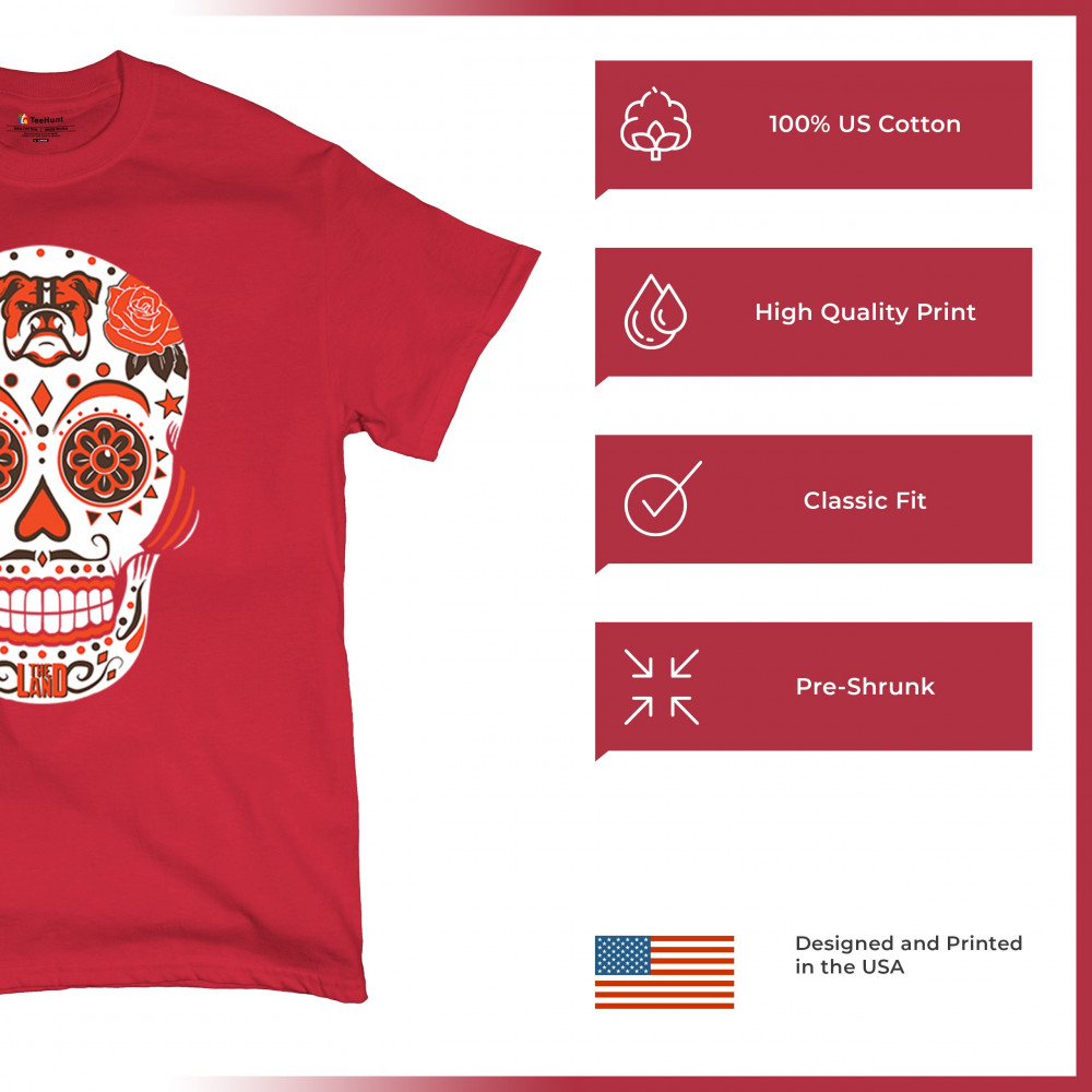 Cleveland football fans can celebrate with this bold Sugar Skull design. Featuring Lake Erie pride, Rust Belt football, and orange & brown heritage, it captures the city’s blue-collar grit and Game Day passion. A perfect calavera for fantasy leagues, playoff energy, and die-hard fan traditions.