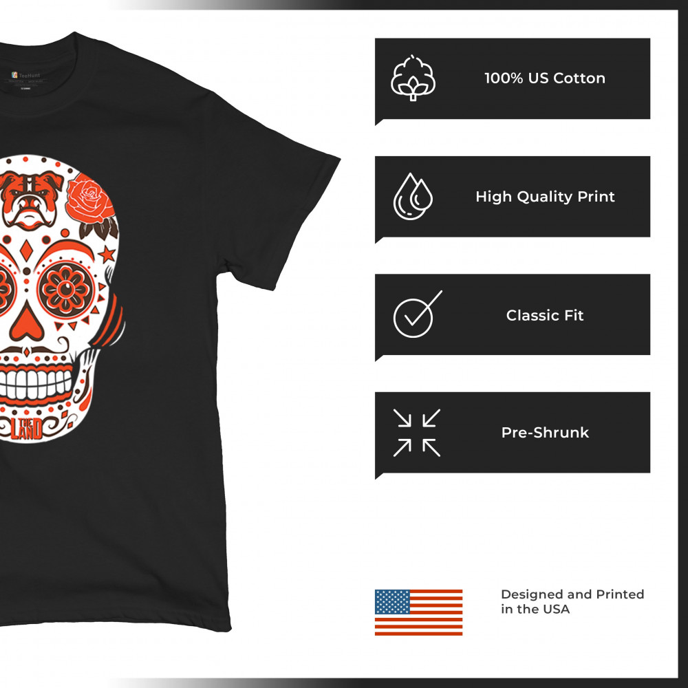 Cleveland football fans can celebrate with this bold Sugar Skull design. Featuring Lake Erie pride, Rust Belt football, and orange & brown heritage, it captures the city’s blue-collar grit and Game Day passion. A perfect calavera for fantasy leagues, playoff energy, and die-hard fan traditions.