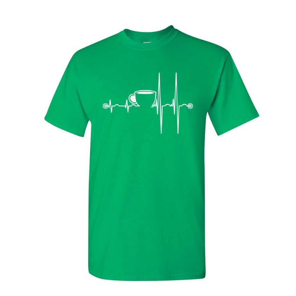 COFFEE CUP HEARTBEAT t-shirt energy waking up coffee drinker mens tee shirt green