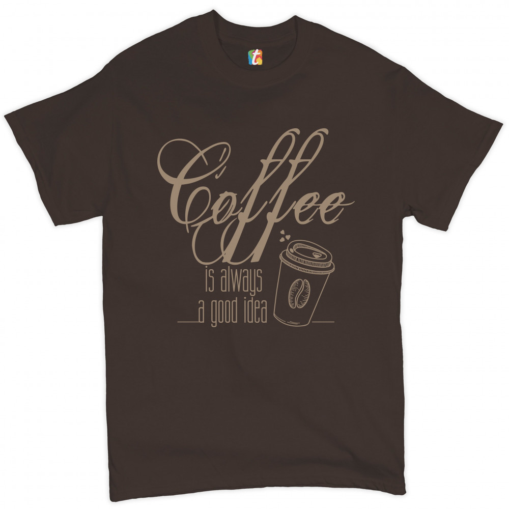 A print saying "Coffee is always a good idea". The print features a picture of a paper cup of tea with a coffee bean on it and with several hearts steaming from it. A great choice to wear to spread positive vibes and show what a passionate coffee fan you