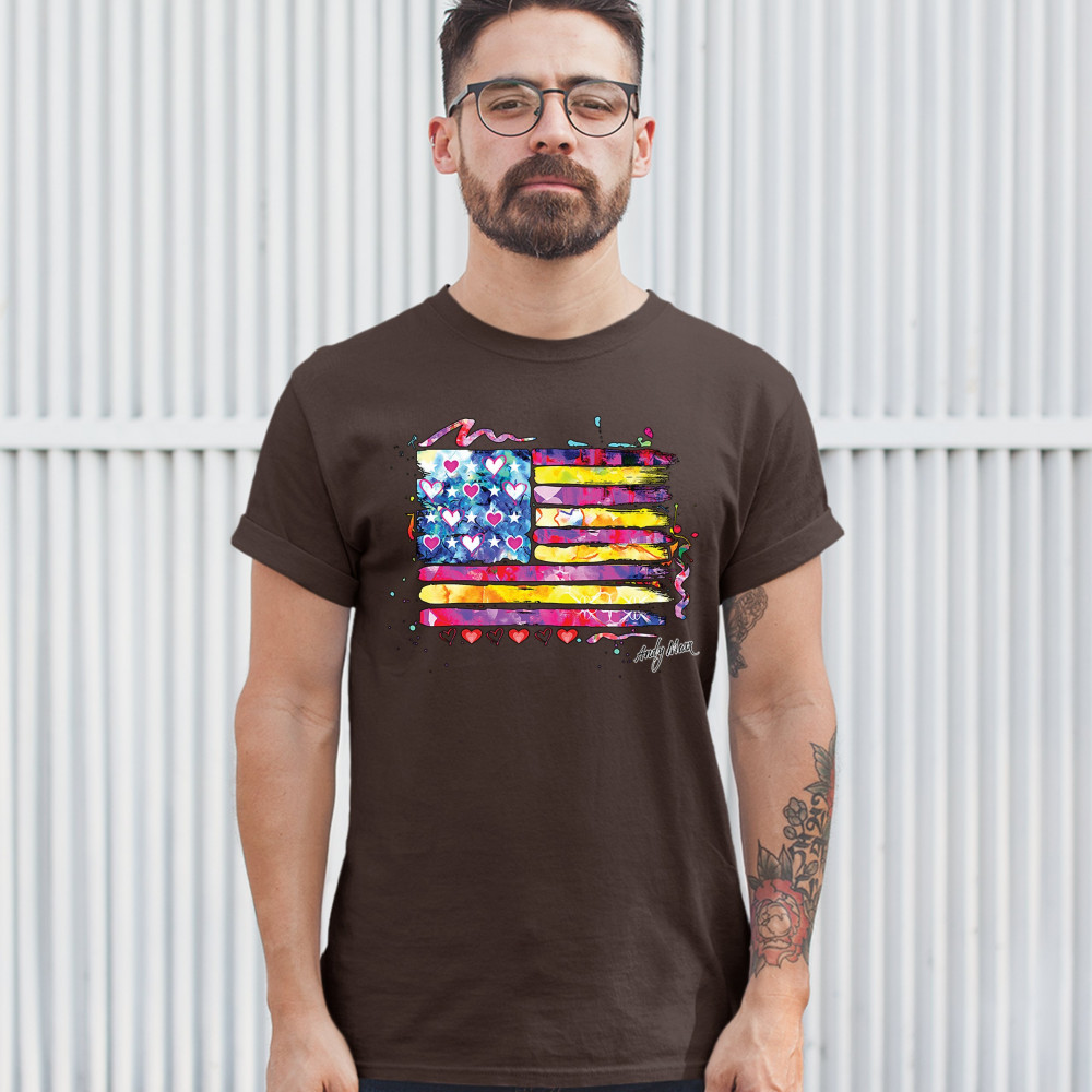 COLORFUL AMERICAN FLAG t-shirt patriotic 4th of july independence men's tee brown