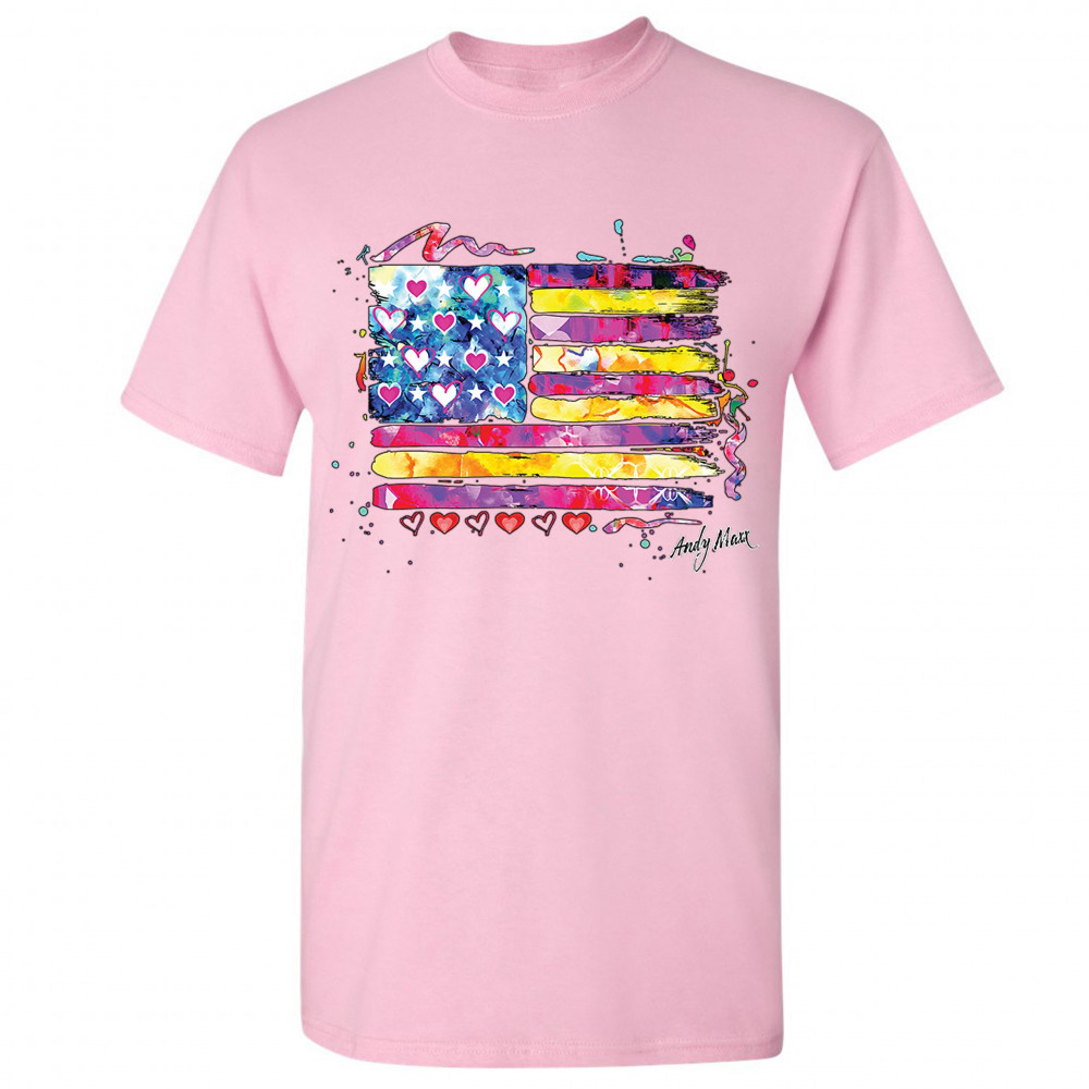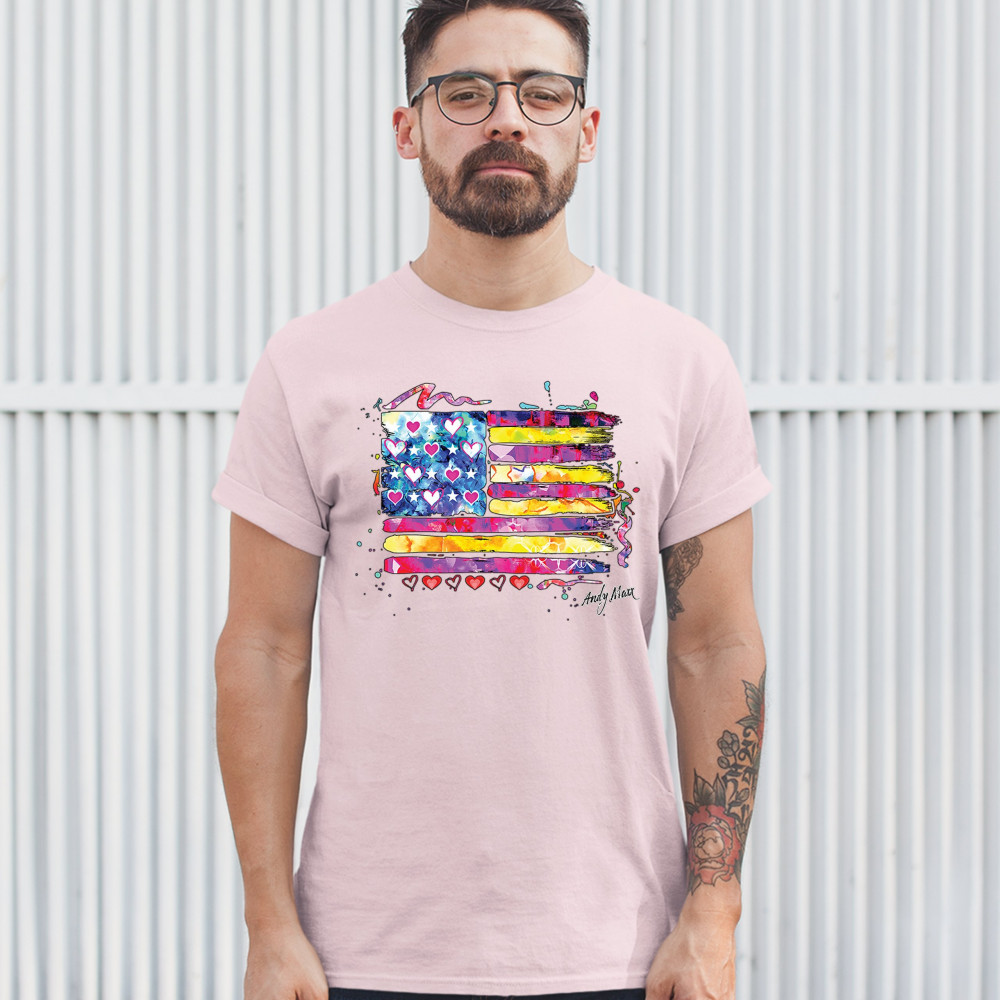 COLORFUL AMERICAN FLAG t-shirt patriotic 4th of july independence men's tee light pink