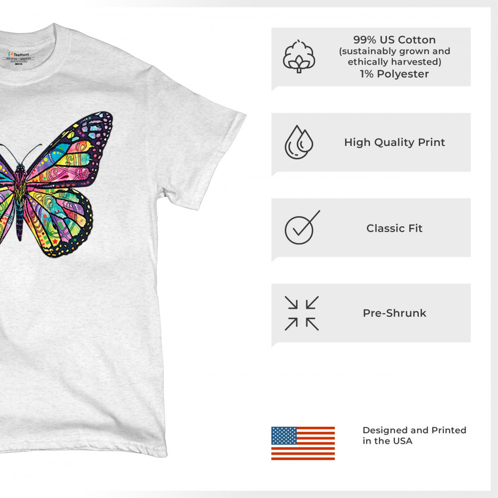 COLORFUL NEON BUTTERFLY t-shirt dean russo beautiful nature men's tee ash gray