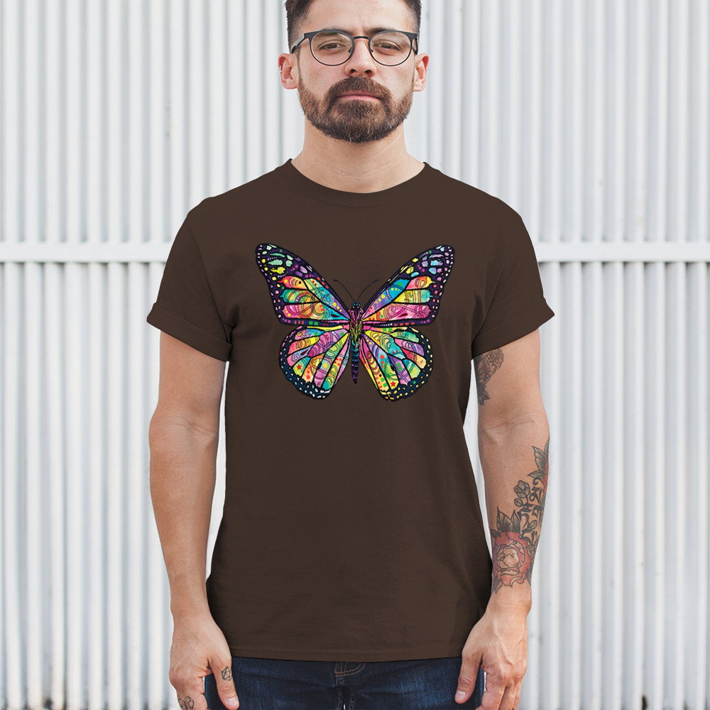 COLORFUL NEON BUTTERFLY t-shirt dean russo beautiful nature men's tee brown