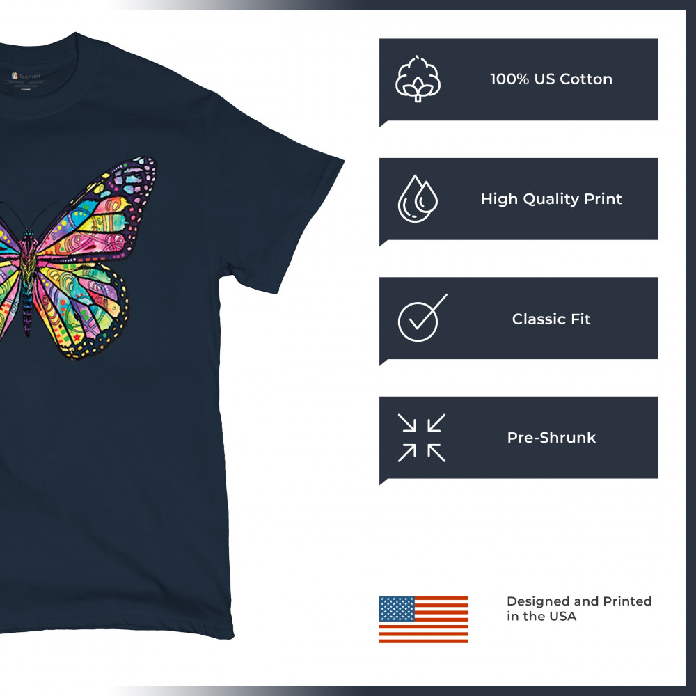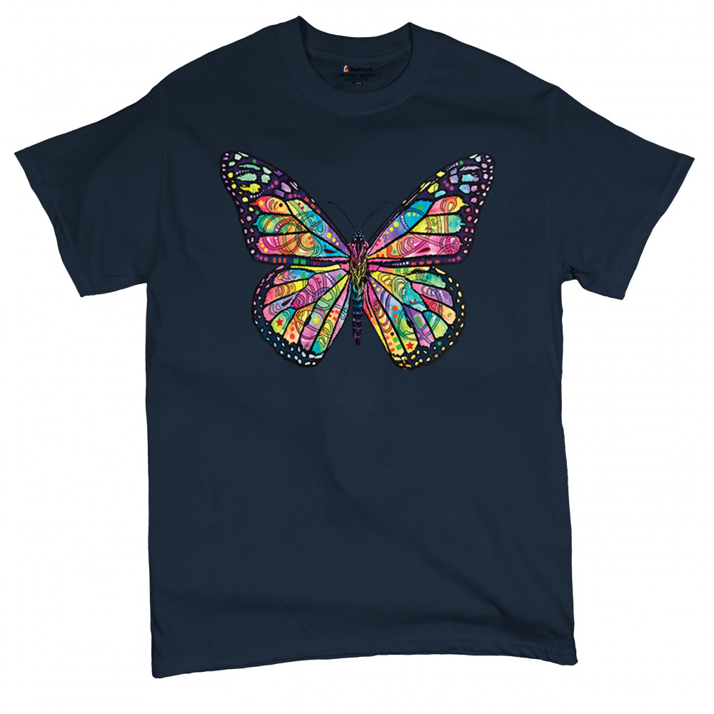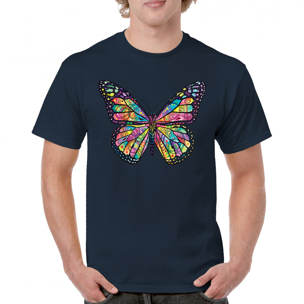 COLORFUL NEON BUTTERFLY t-shirt dean russo beautiful nature men's tee navy blue