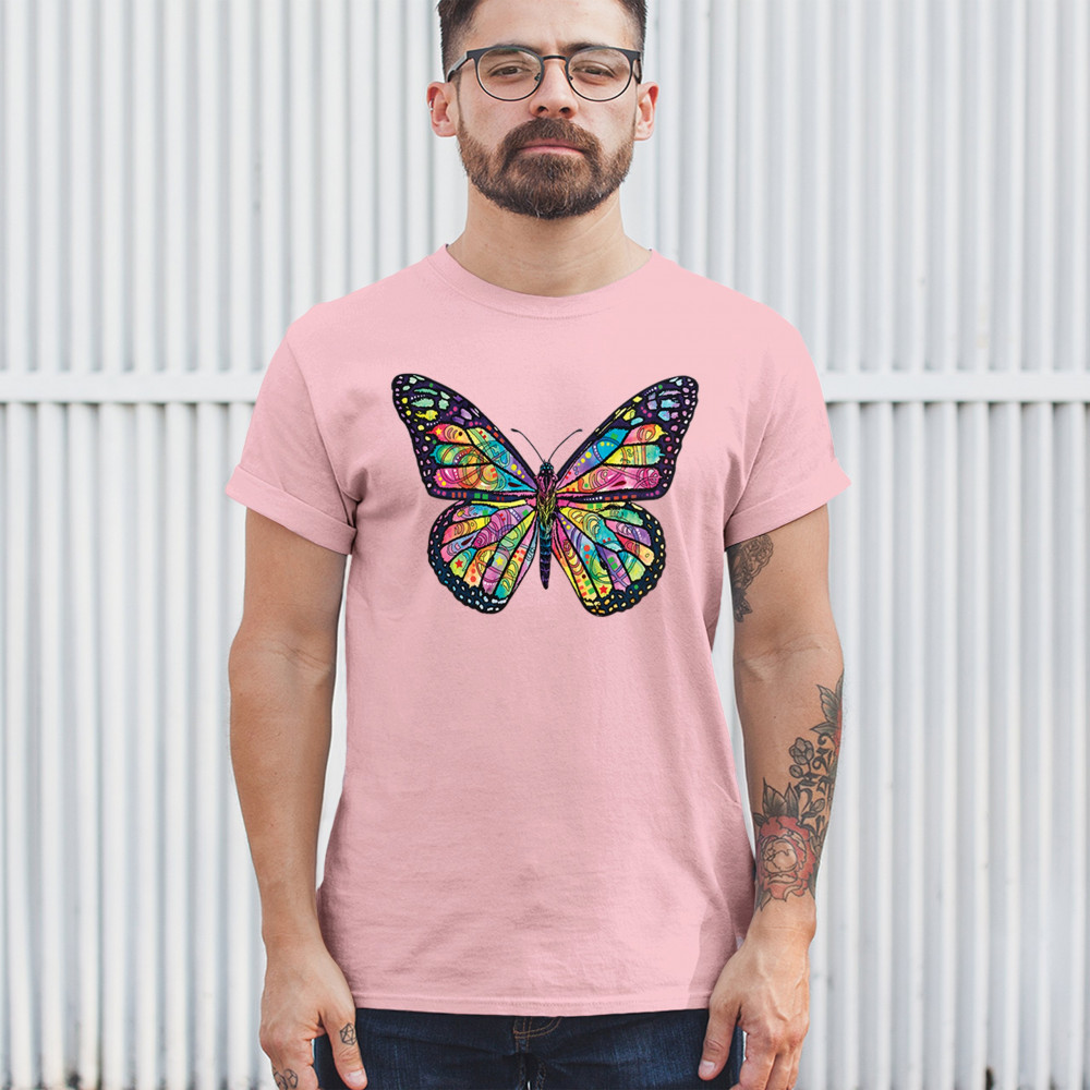 COLORFUL NEON BUTTERFLY t-shirt dean russo beautiful nature men's tee light pink