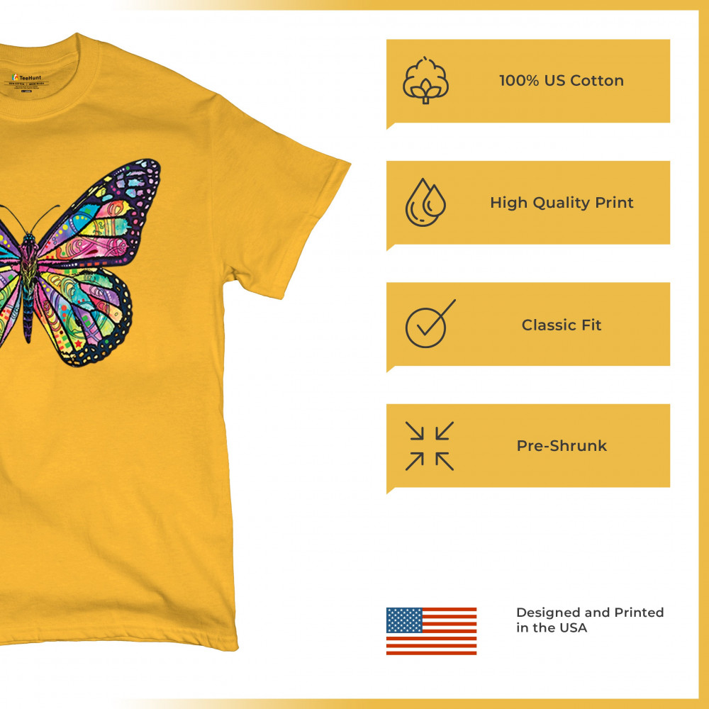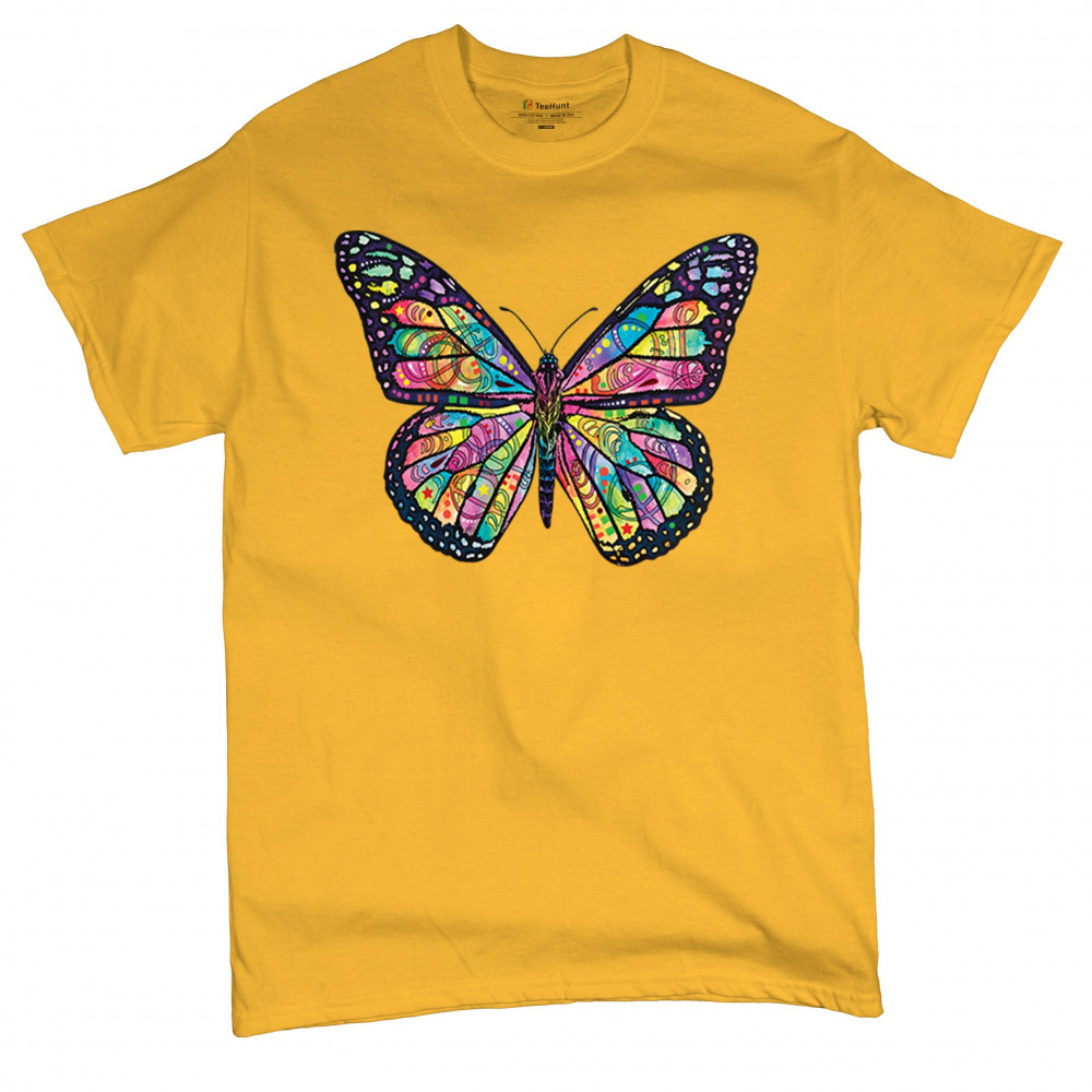 COLORFUL NEON BUTTERFLY t-shirt dean russo beautiful nature men's tee yellow