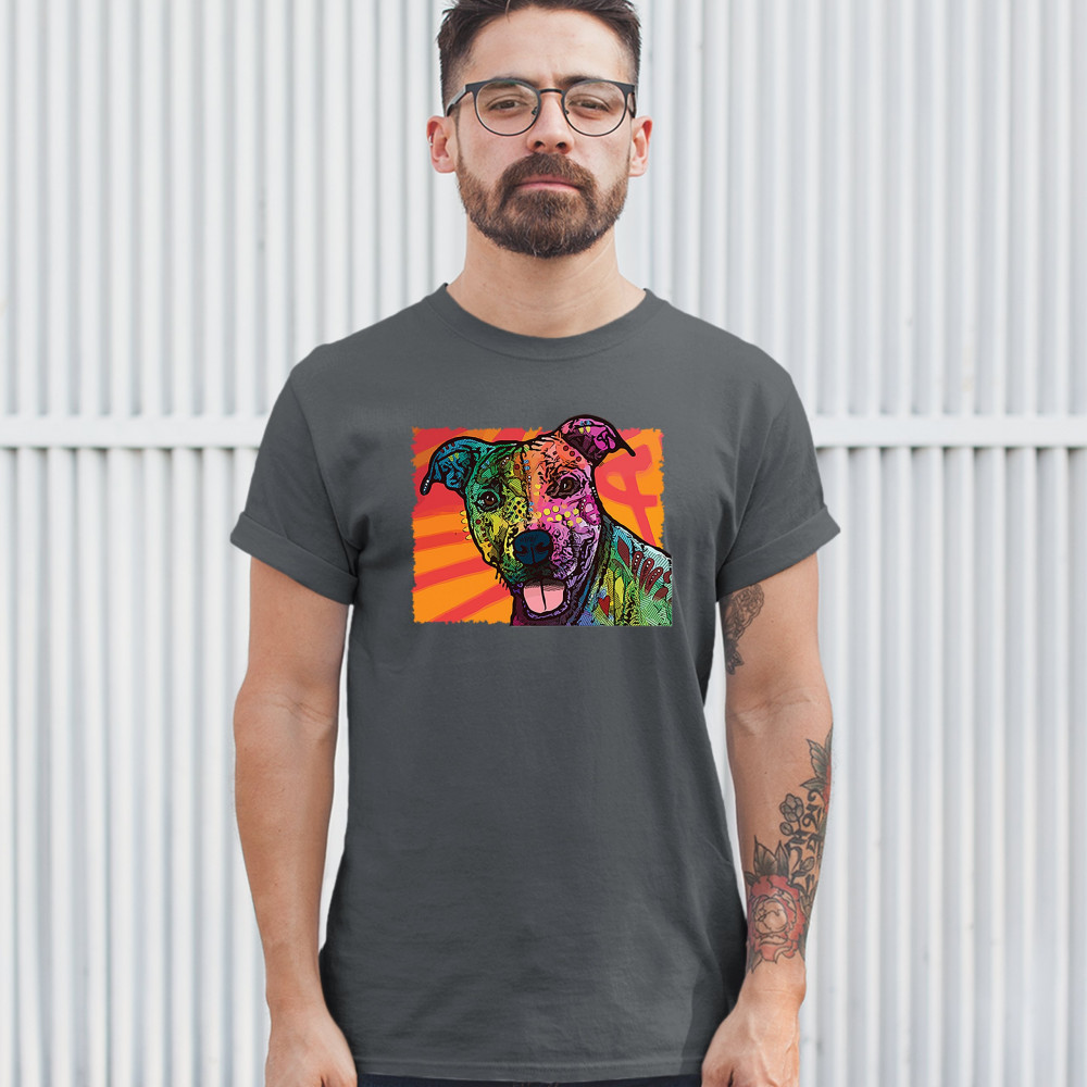 COLORFUL PITBULL t-shirt andy maxx dog lover pet owner adopt men's tee charcoal