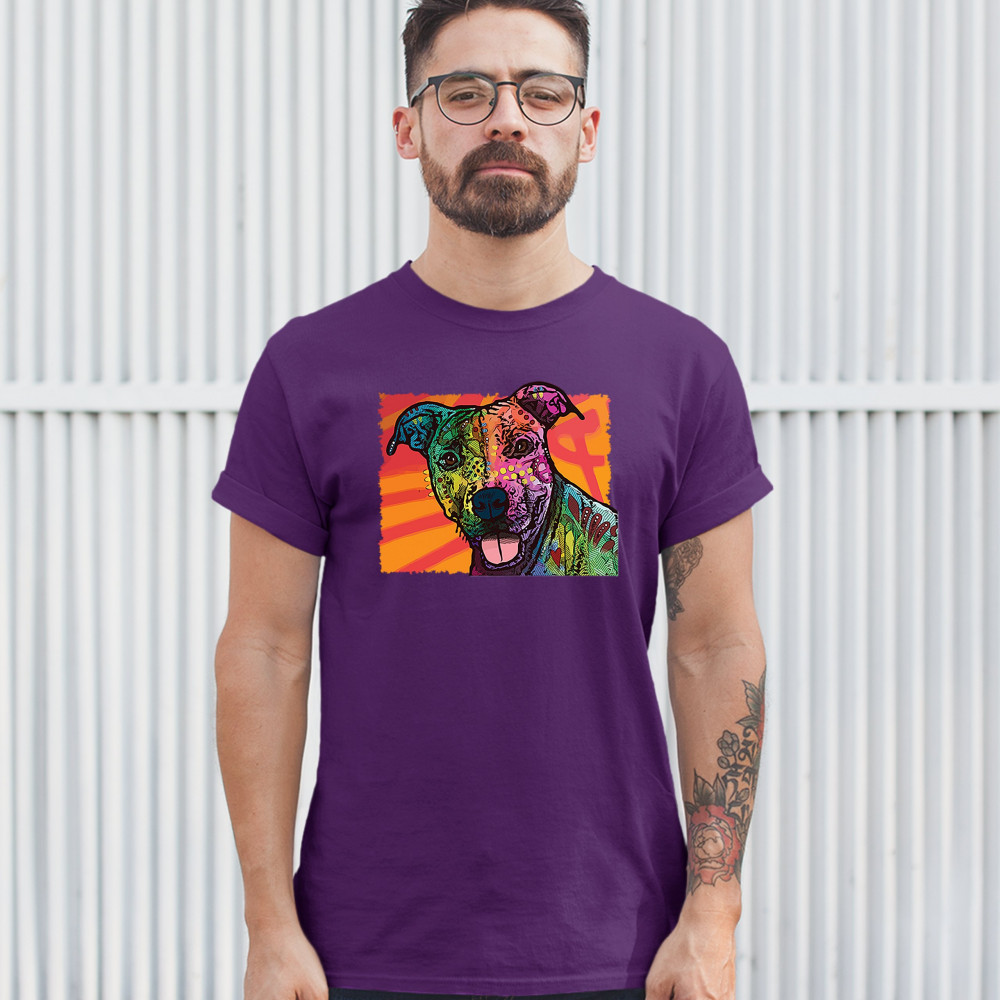 COLORFUL PITBULL t-shirt andy maxx dog lover pet owner adopt men's tee purple