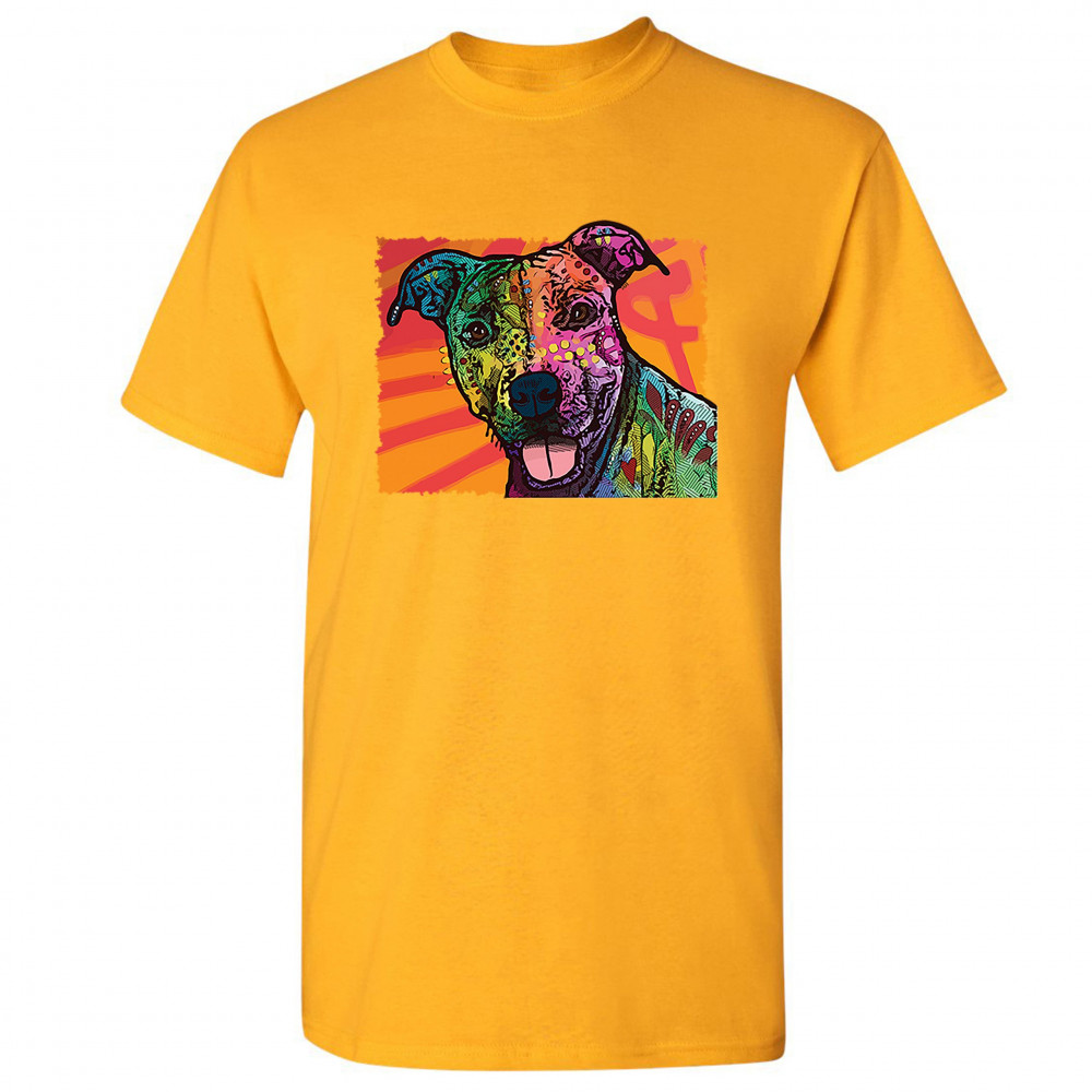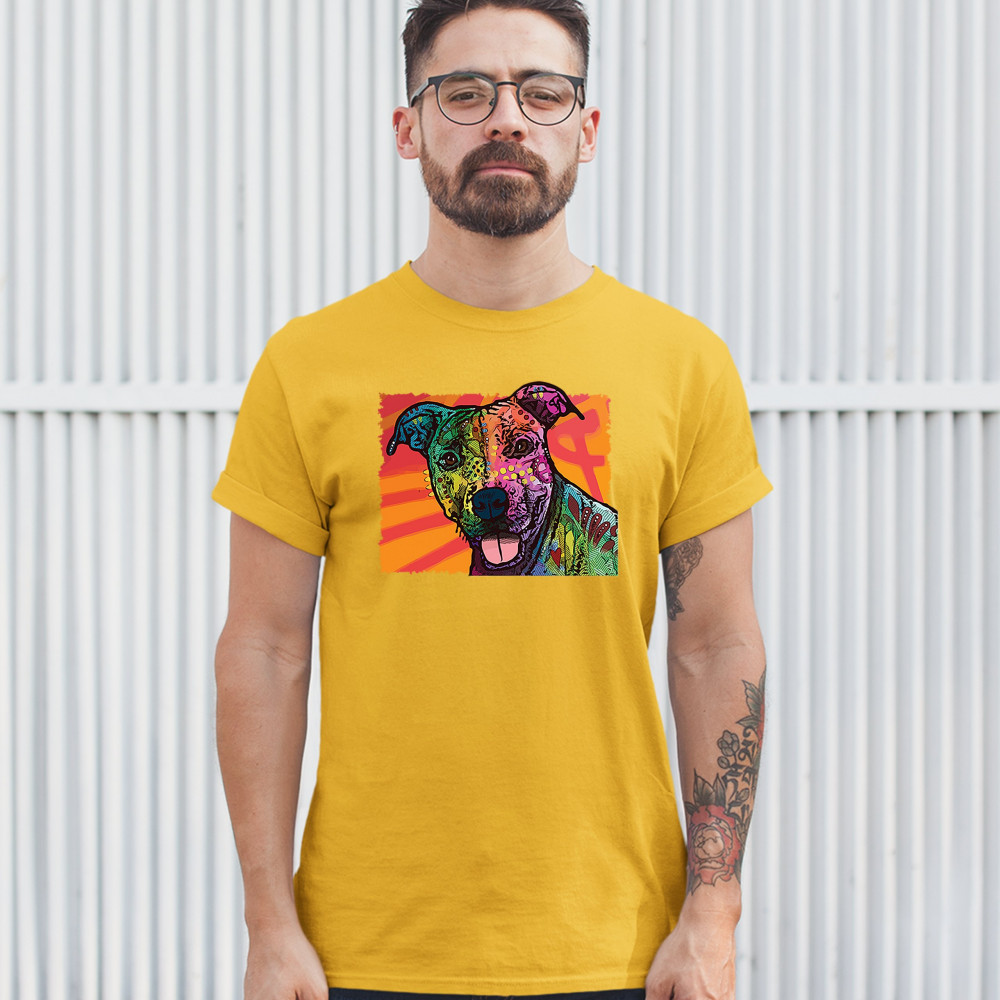 COLORFUL PITBULL t-shirt andy maxx dog lover pet owner adopt men's tee yellow