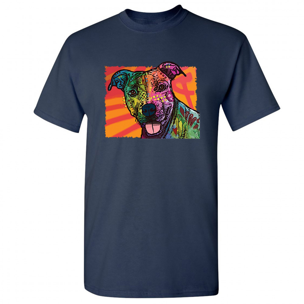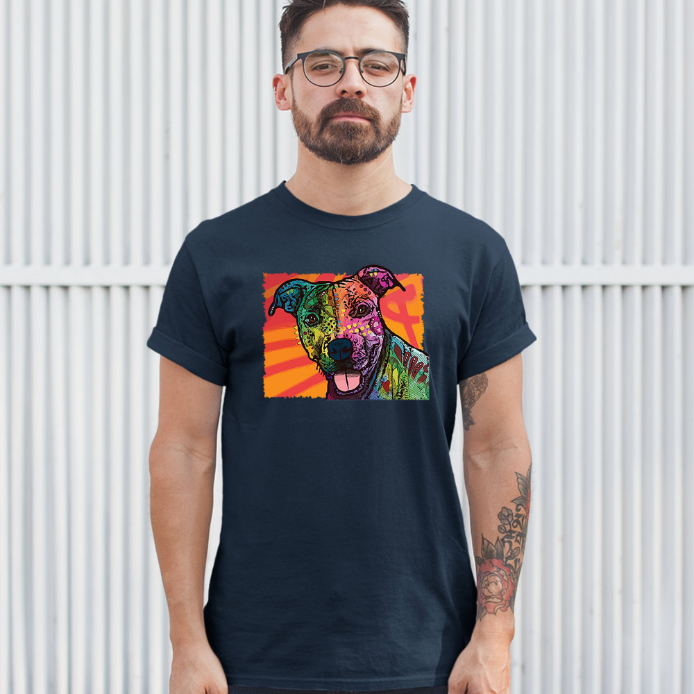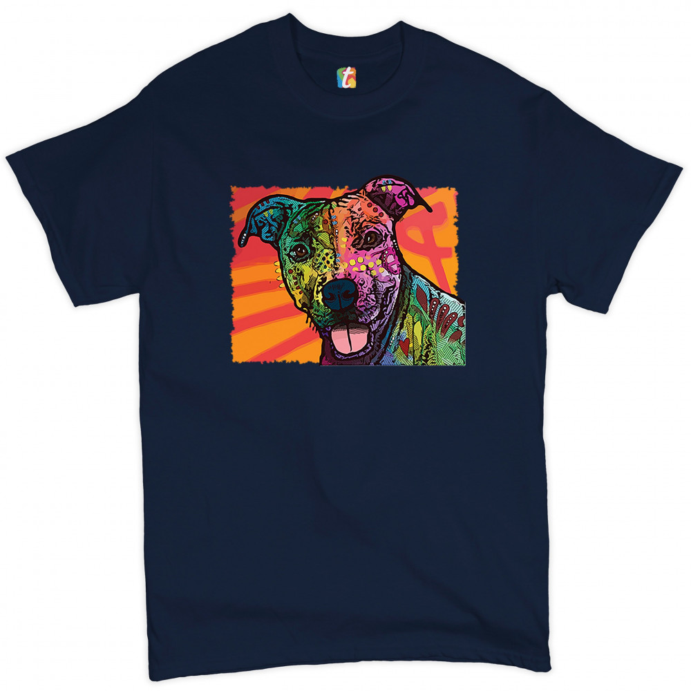 COLORFUL PITBULL t-shirt andy maxx dog lover pet owner adopt men's tee navy blue
