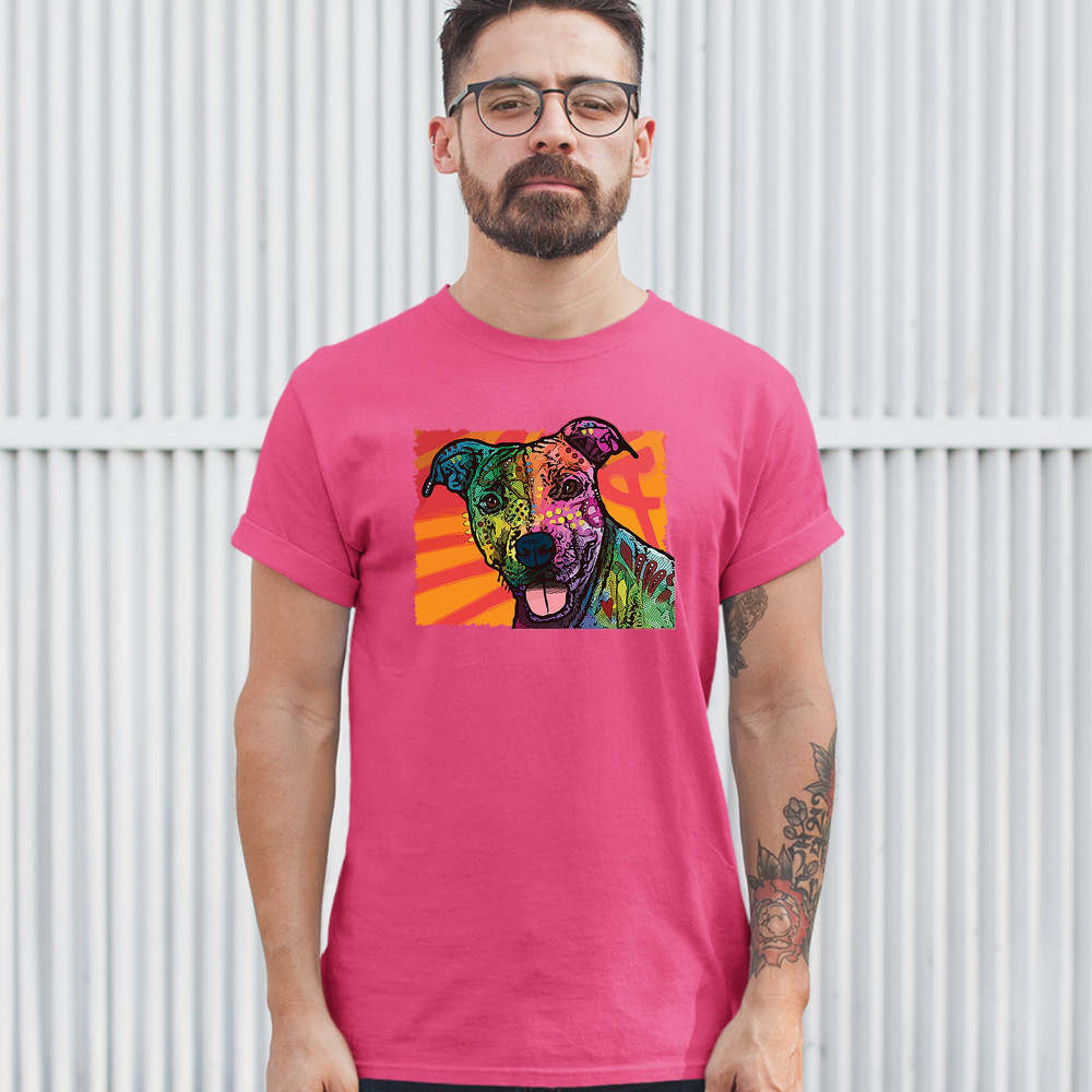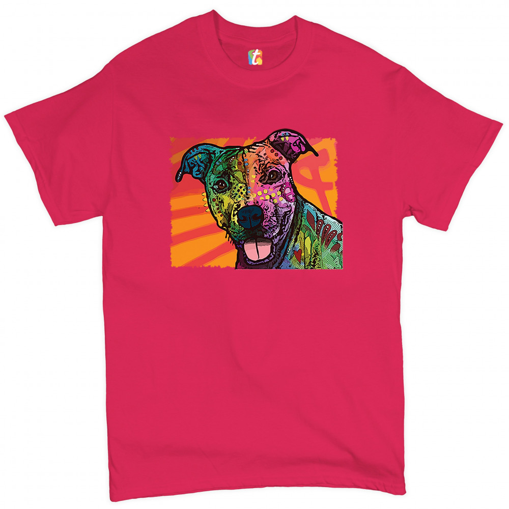 COLORFUL PITBULL t-shirt andy maxx dog lover pet owner adopt men's tee hot pink