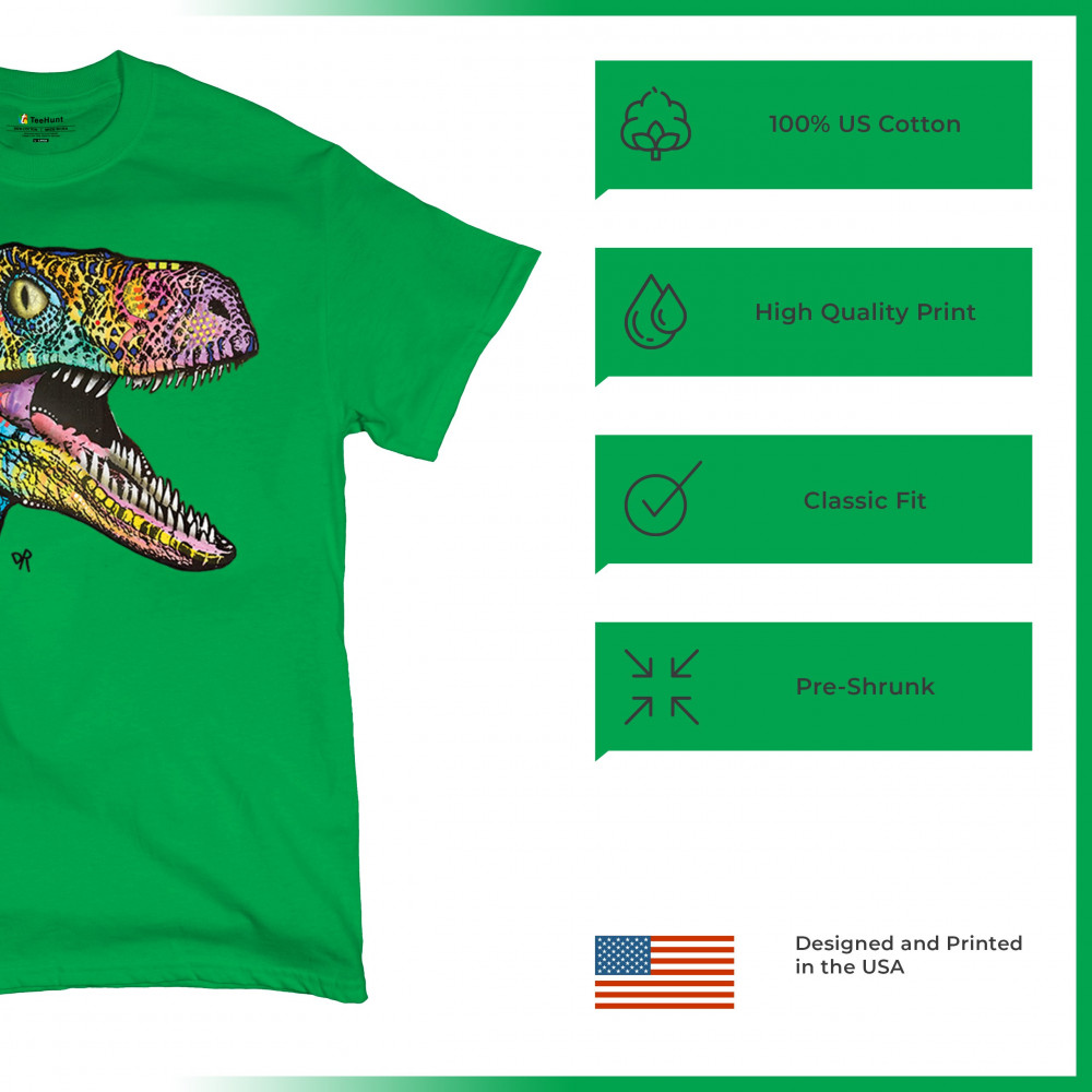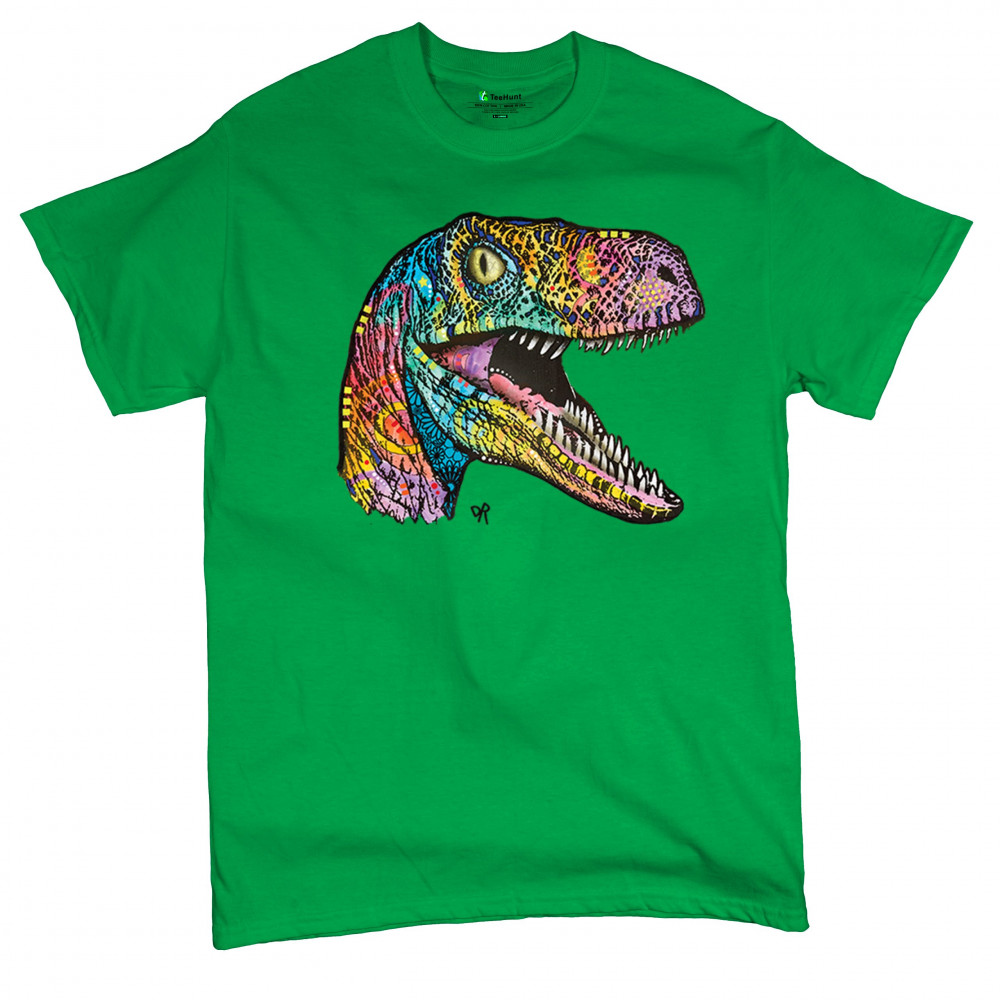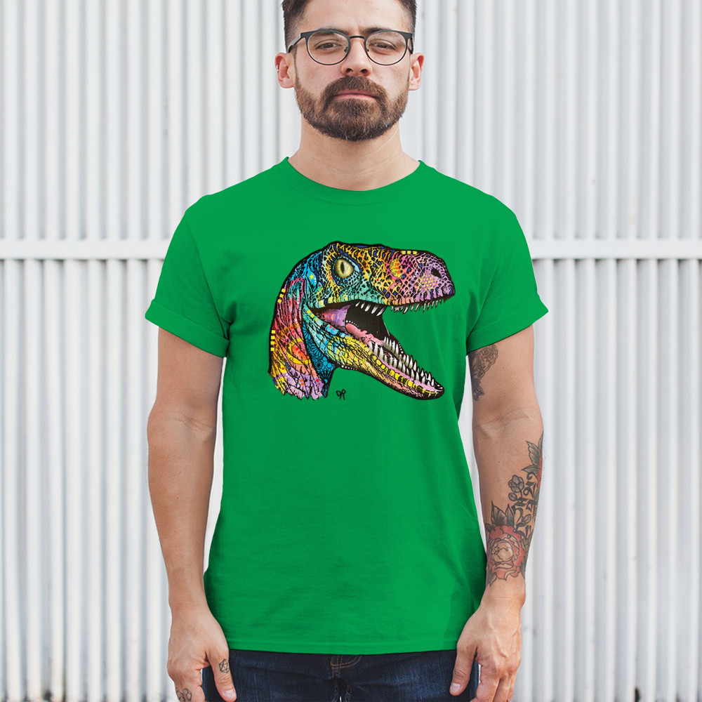 COLORFUL RAPTOR t-shirt dean russo neon jurassic dinosaur men's tee green