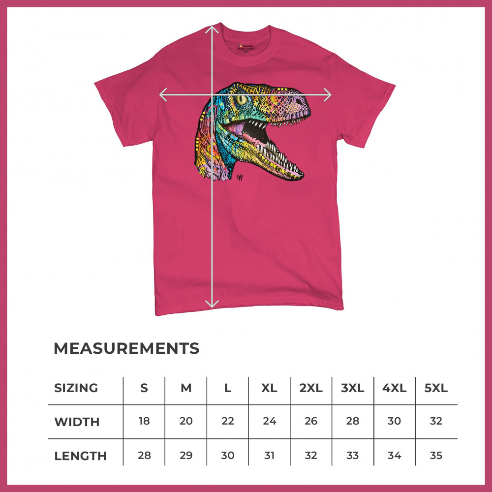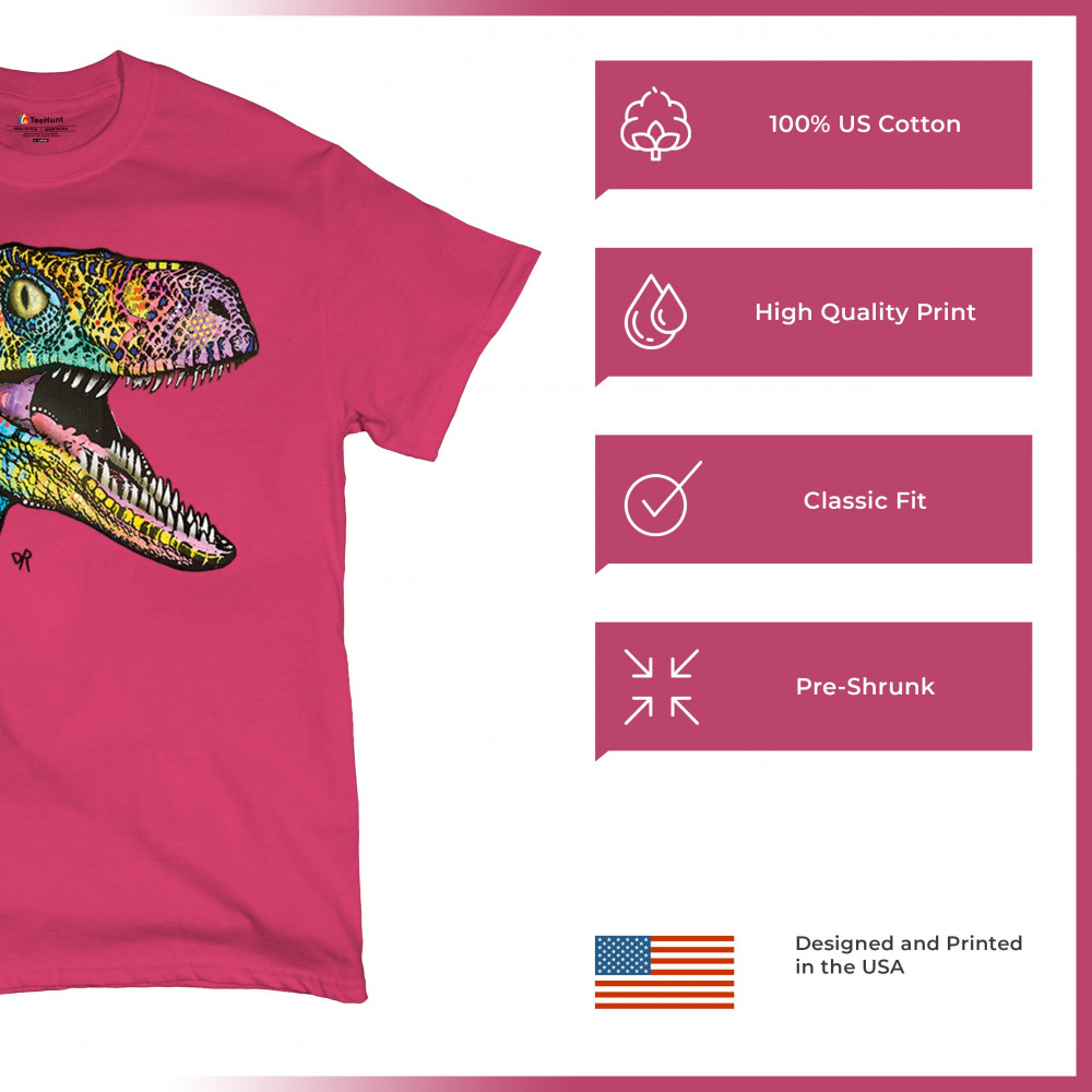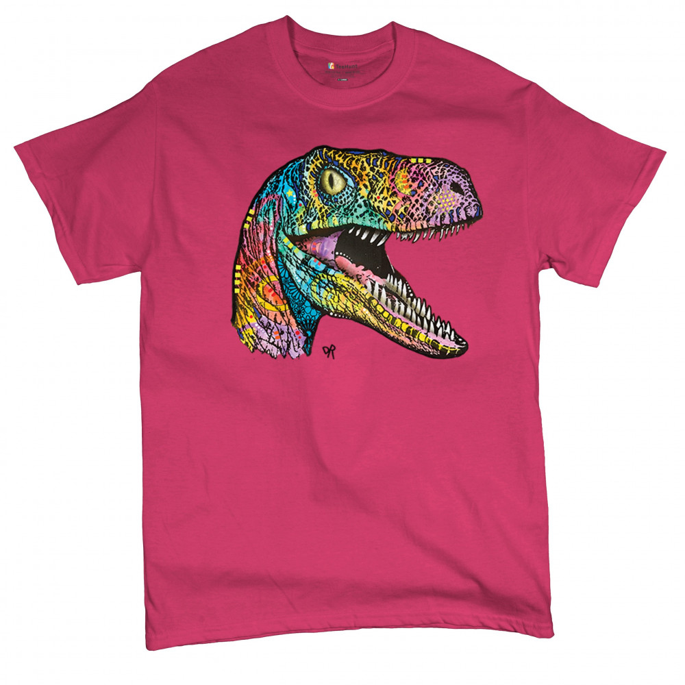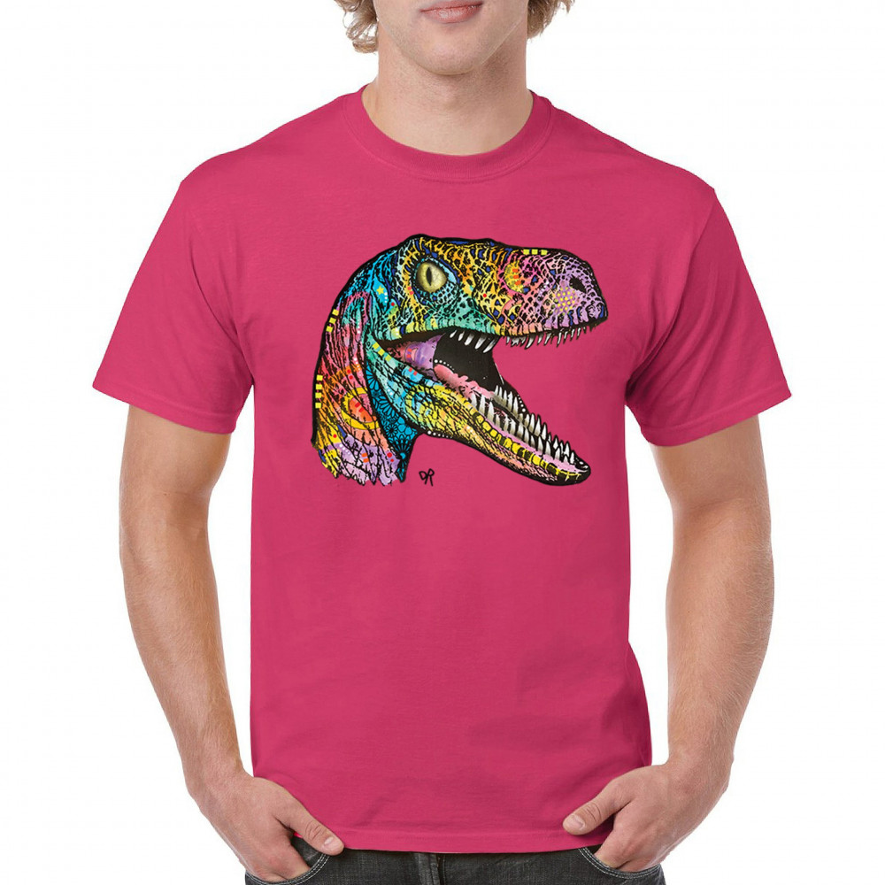 COLORFUL RAPTOR t-shirt dean russo neon jurassic dinosaur men's tee hot pink