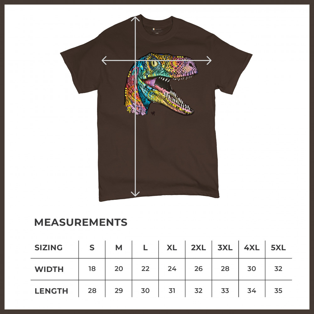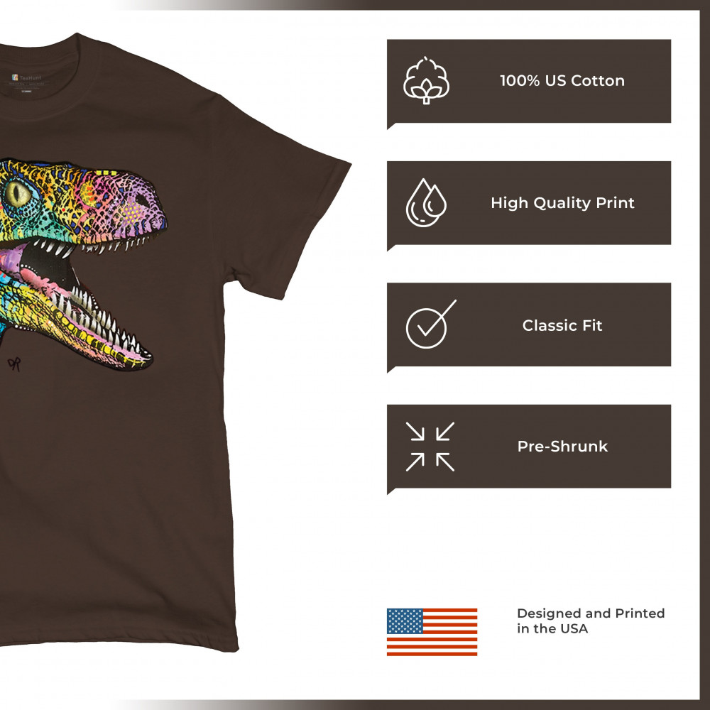 COLORFUL RAPTOR t-shirt dean russo neon jurassic dinosaur men's tee brown