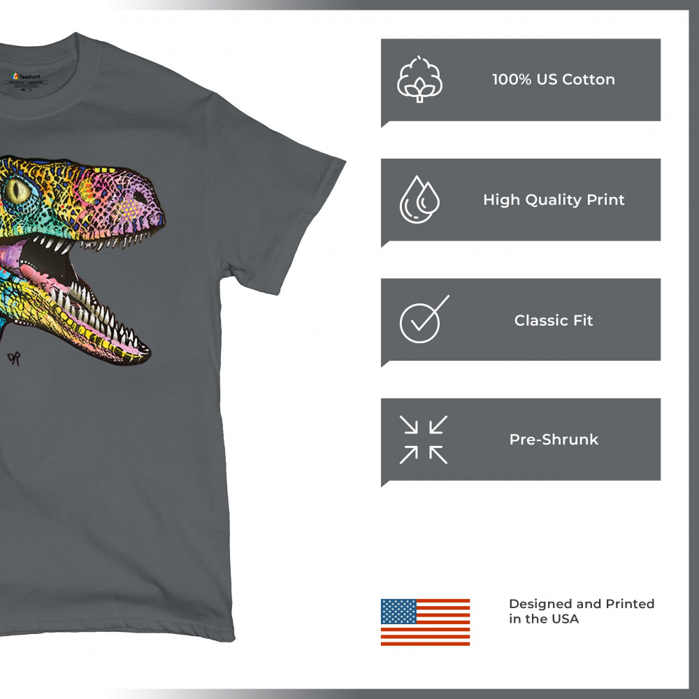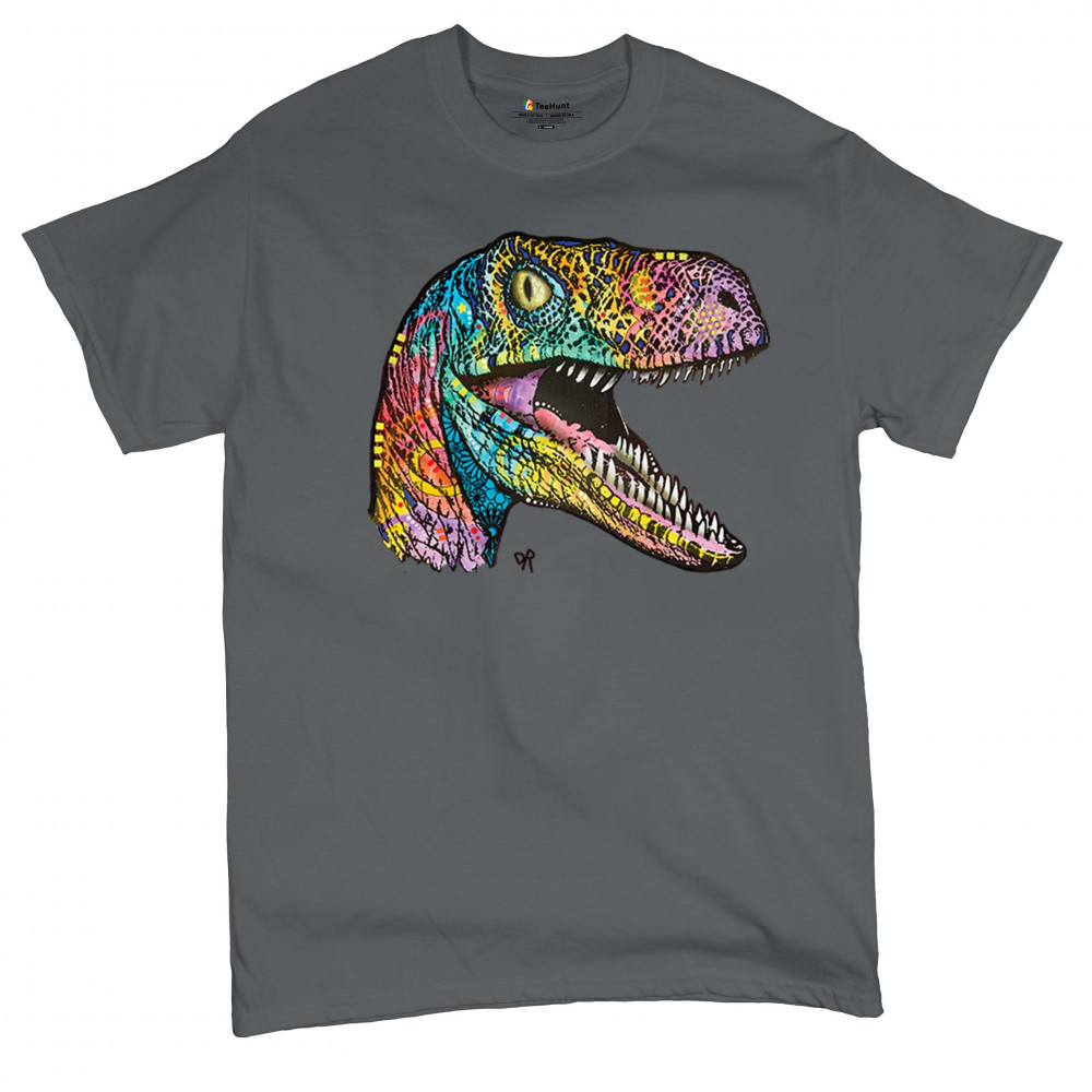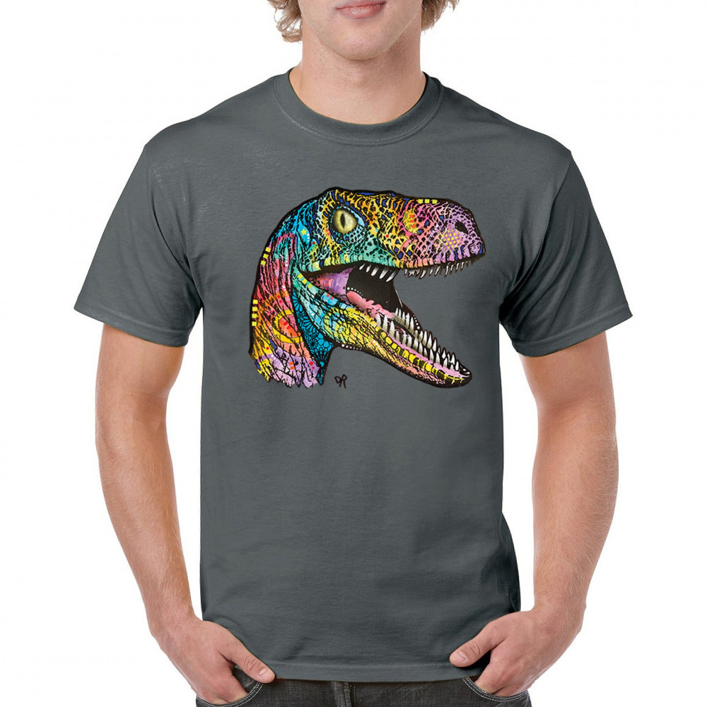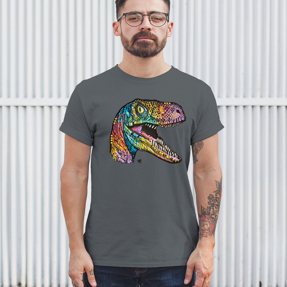 COLORFUL RAPTOR t-shirt dean russo neon jurassic dinosaur men's tee charcoal