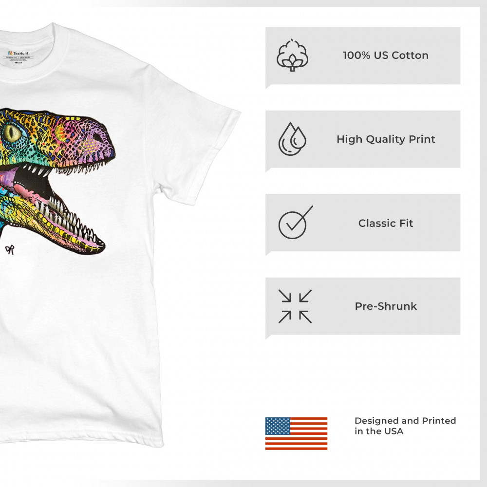 COLORFUL RAPTOR t-shirt dean russo neon jurassic dinosaur men's tee white