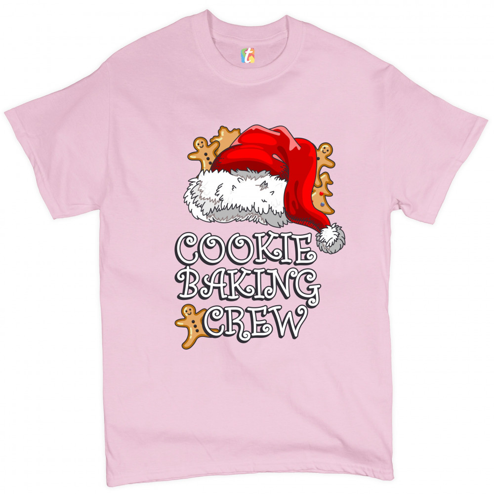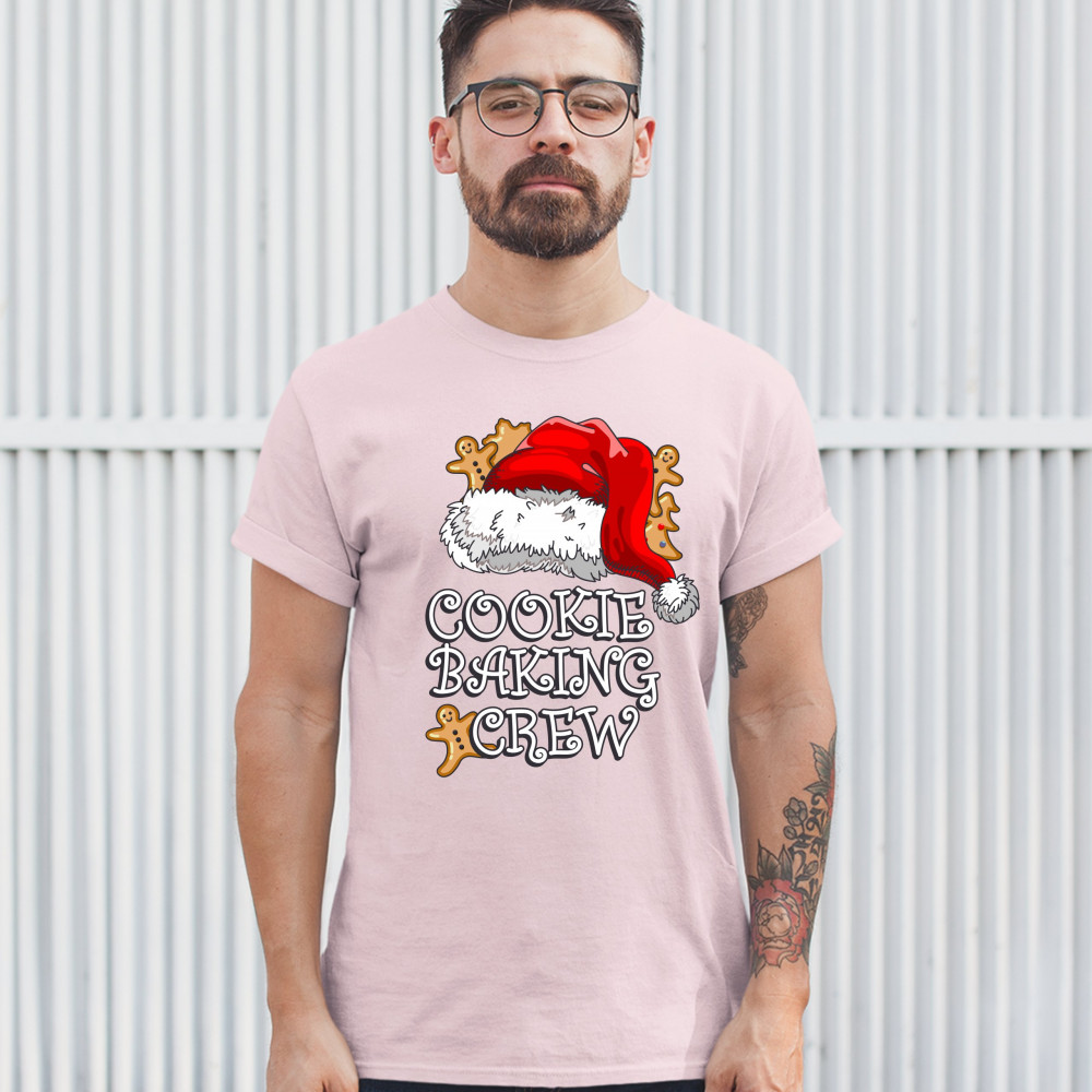 COOKIE BAKING CRUE t-shirt santa's hat christmas gingerbread men men's tee light pink