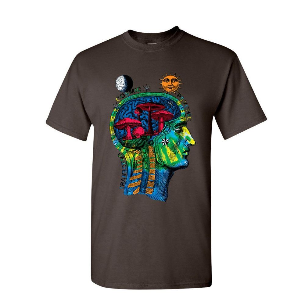 MUSHROOM HEAD cosmic psychic transcend t-shirt psychedelic trippy weird space mens tee shirt brown