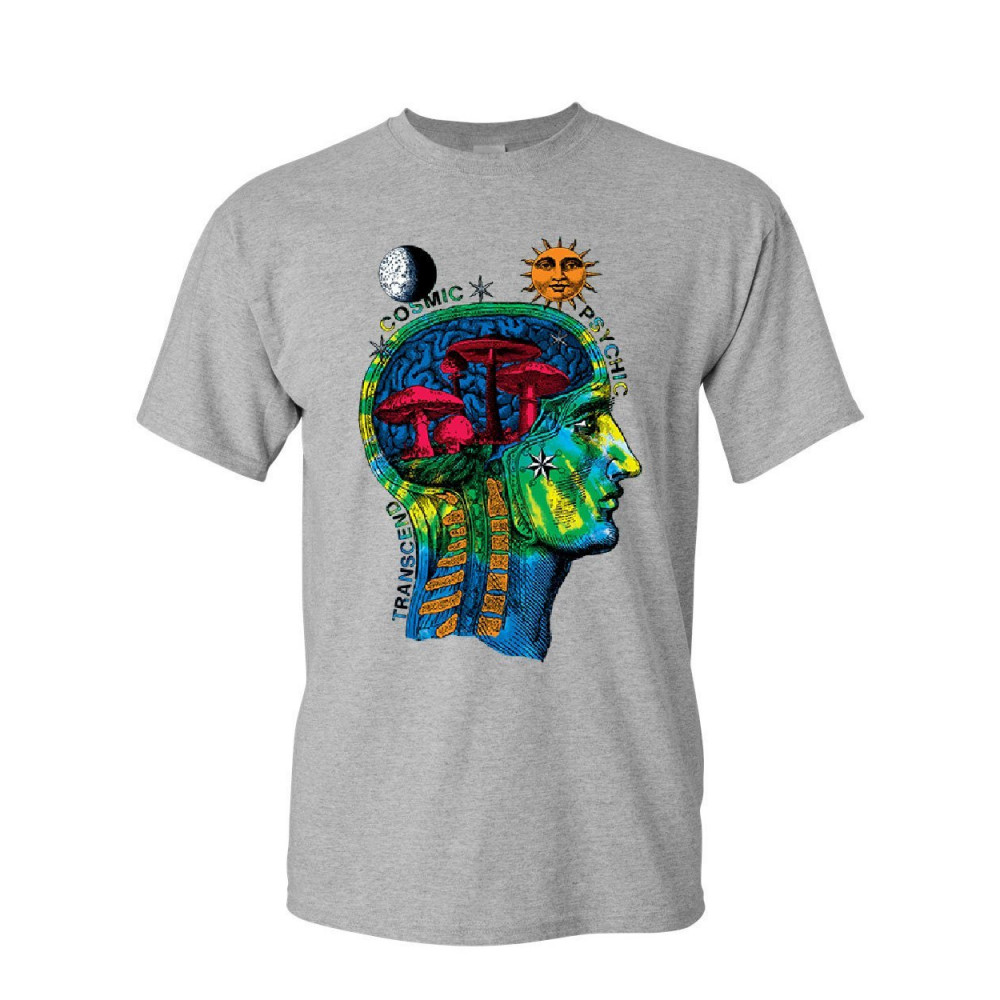 MUSHROOM HEAD cosmic psychic transcend t-shirt psychedelic trippy weird space mens tee shirt sport gray