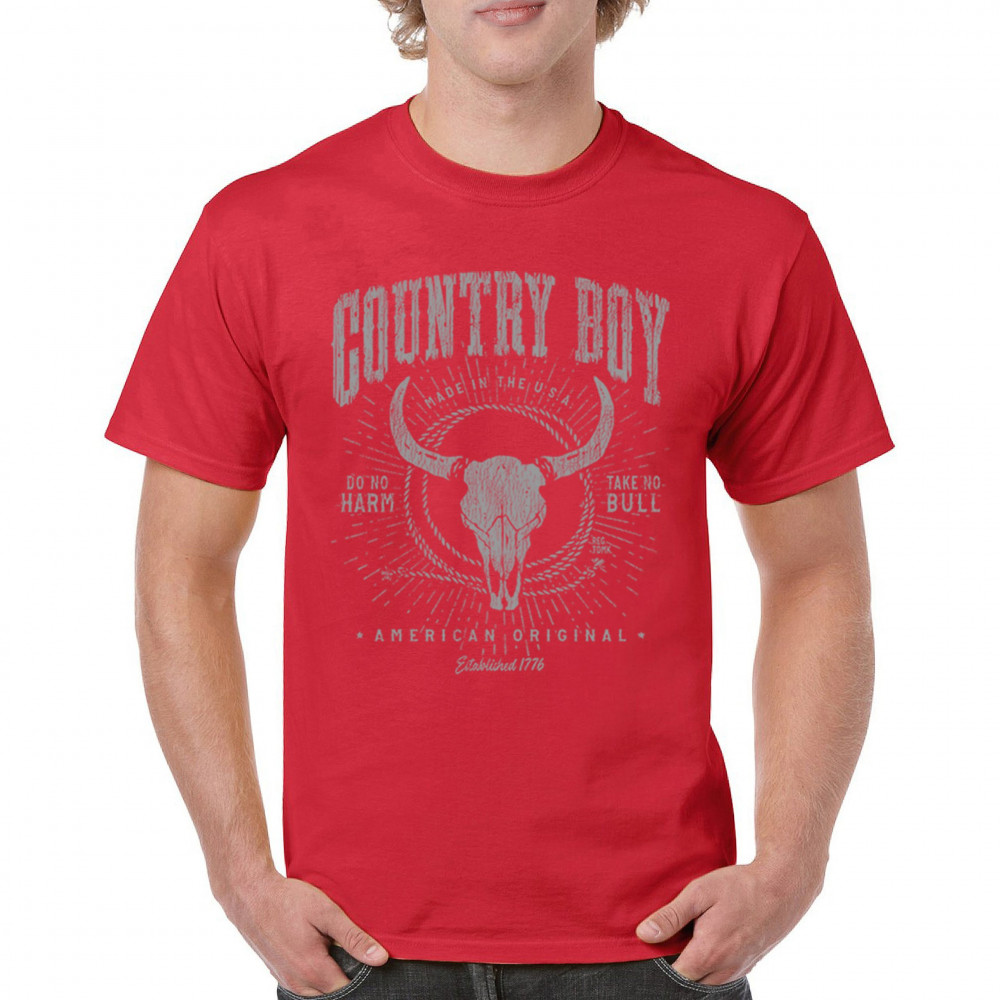 Bold country boy design with bull skull, distressed western style, patriotic grit, and the phrase “Do No Harm, Take No Bull.â€