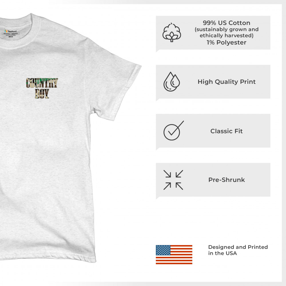 Country Boy Camo embodies rugged outdoor spirit and American pride with bold camo print lettering. Perfect for country music fans, cowboys, and outdoorsy souls who love hunting, farm life, and small town vibes. This design celebrates country roots, southern grit, and American heritage, offering great value for anyone proud to live wild and free.
