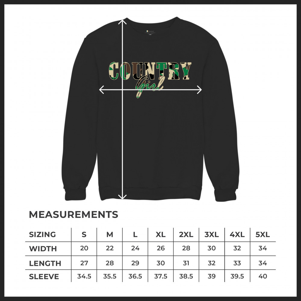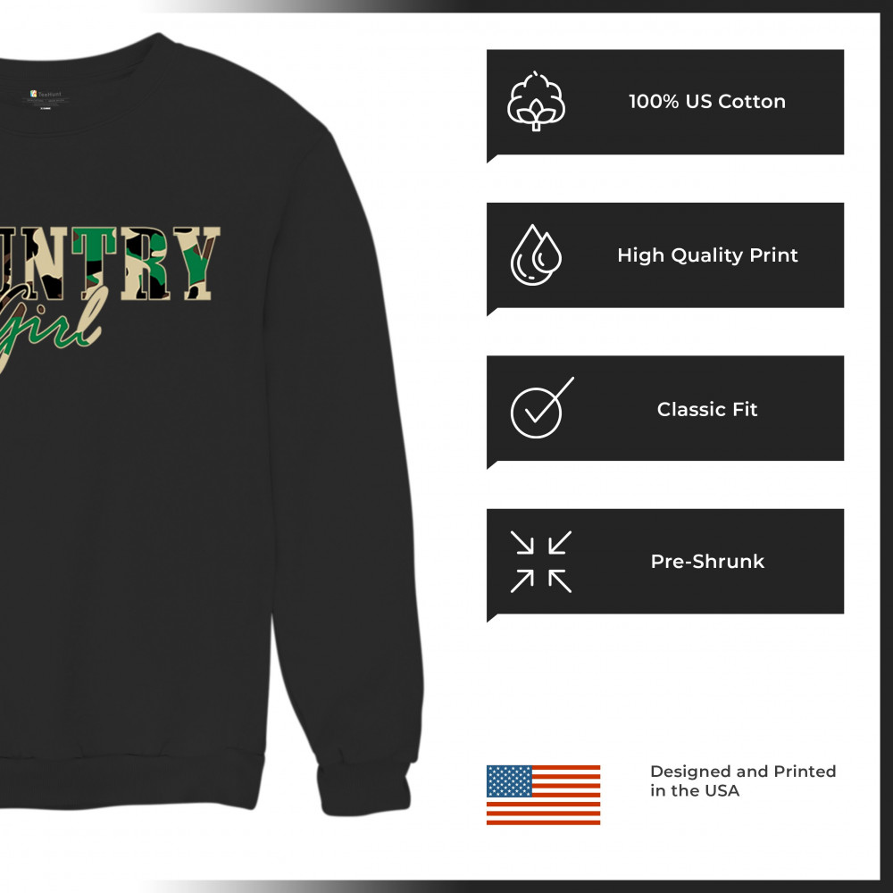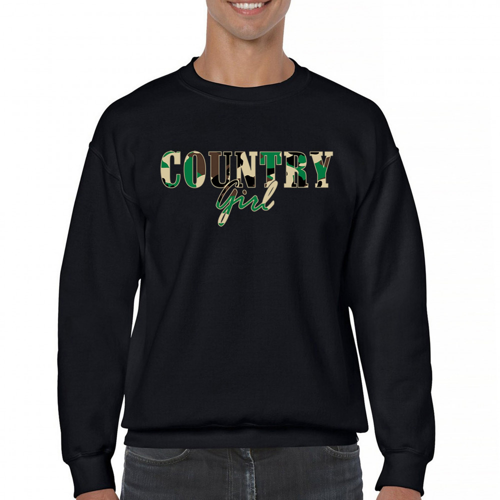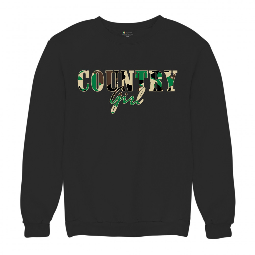 COUNTRY GIRL CAMO crewneck sweatshirt small town cowgirl farm life military black