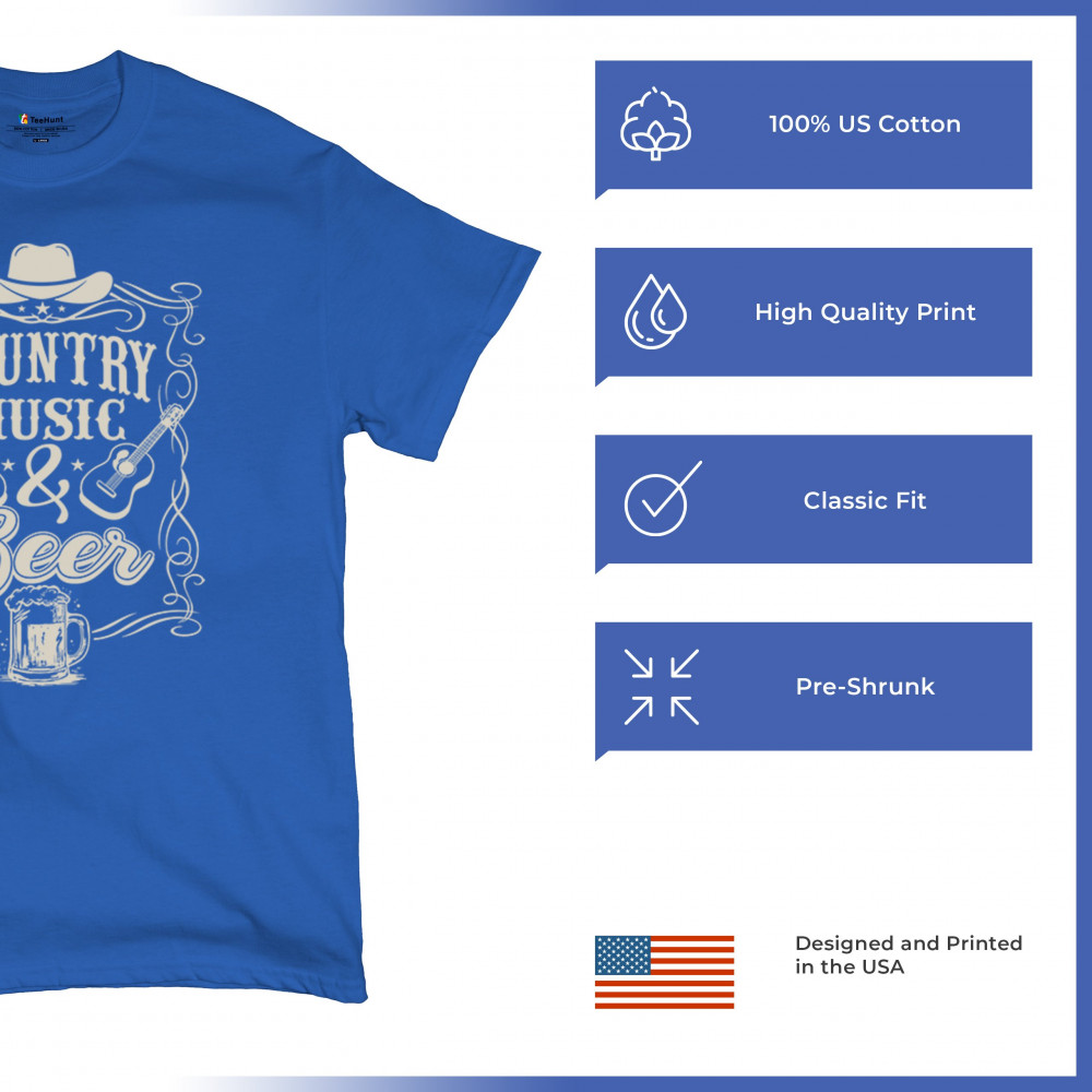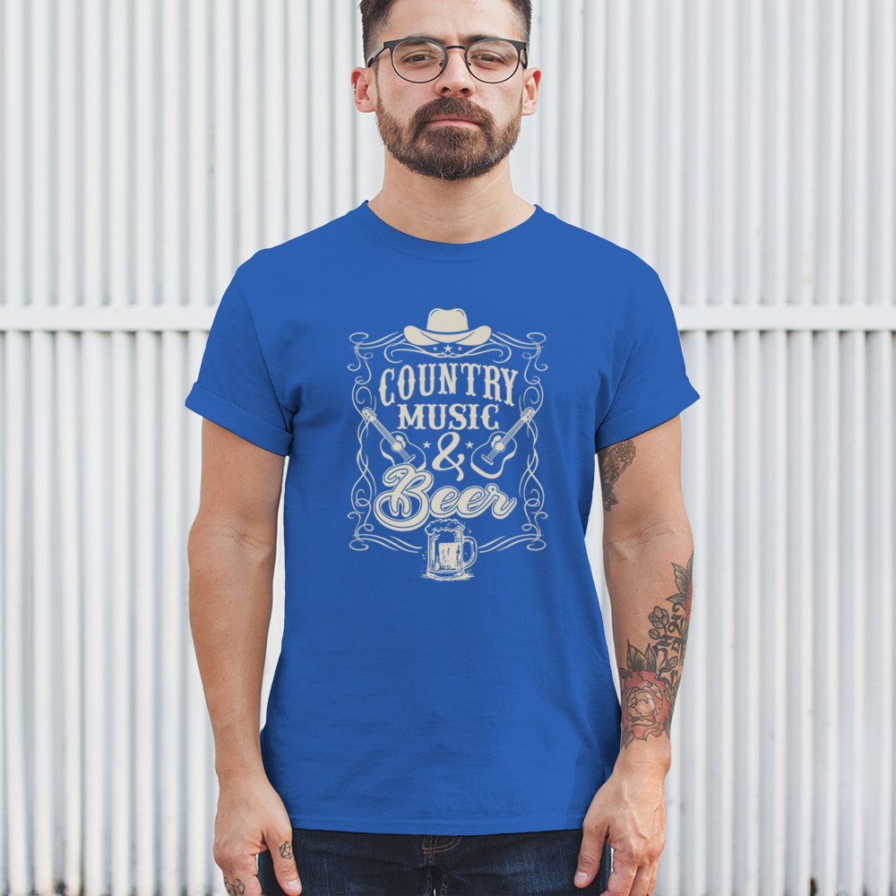 Channel your inner country star with this vintage-style design featuring guitars, a cowboy hat, scroll flourishes, and a cold beer mug. Perfect for fans of country music and beer who love rodeos, tailgates, festivals, or just chilling at the bar. Rustic charm and southern soul meet in one perfect print.