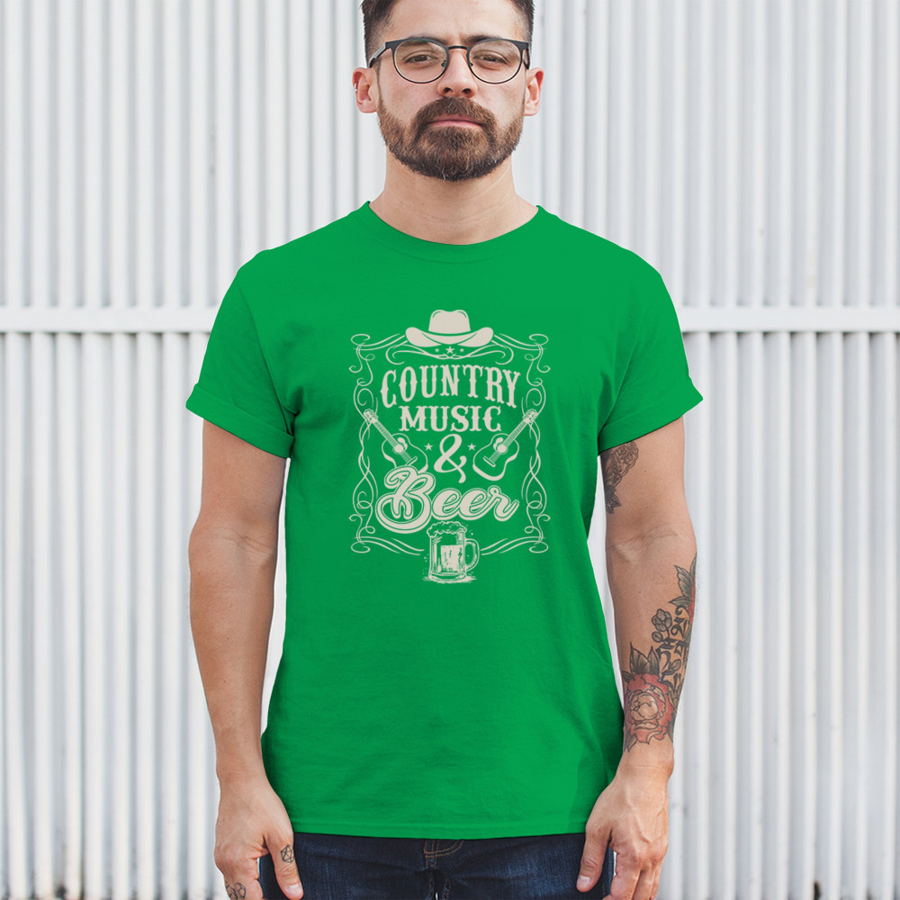 Channel your inner country star with this vintage-style design featuring guitars, a cowboy hat, scroll flourishes, and a cold beer mug. Perfect for fans of country music and beer who love rodeos, tailgates, festivals, or just chilling at the bar. Rustic charm and southern soul meet in one perfect print.