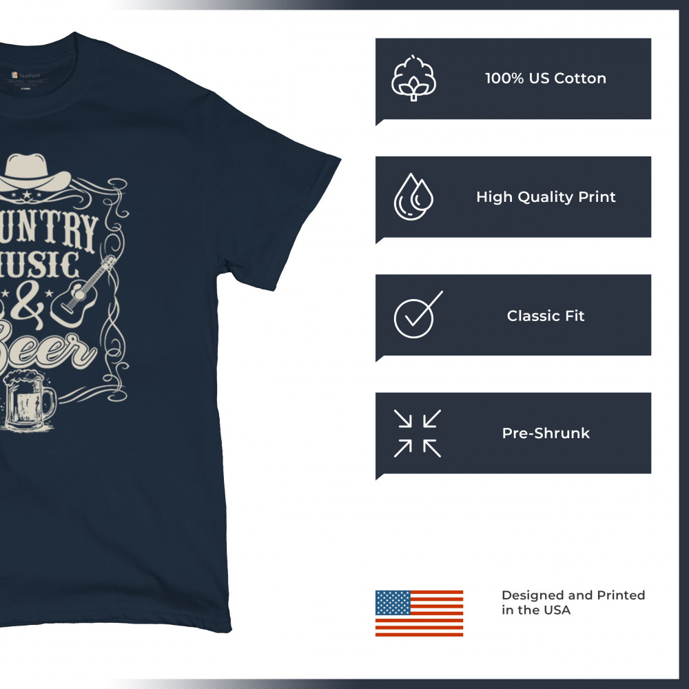 Channel your inner country star with this vintage-style design featuring guitars, a cowboy hat, scroll flourishes, and a cold beer mug. Perfect for fans of country music and beer who love rodeos, tailgates, festivals, or just chilling at the bar. Rustic charm and southern soul meet in one perfect print.