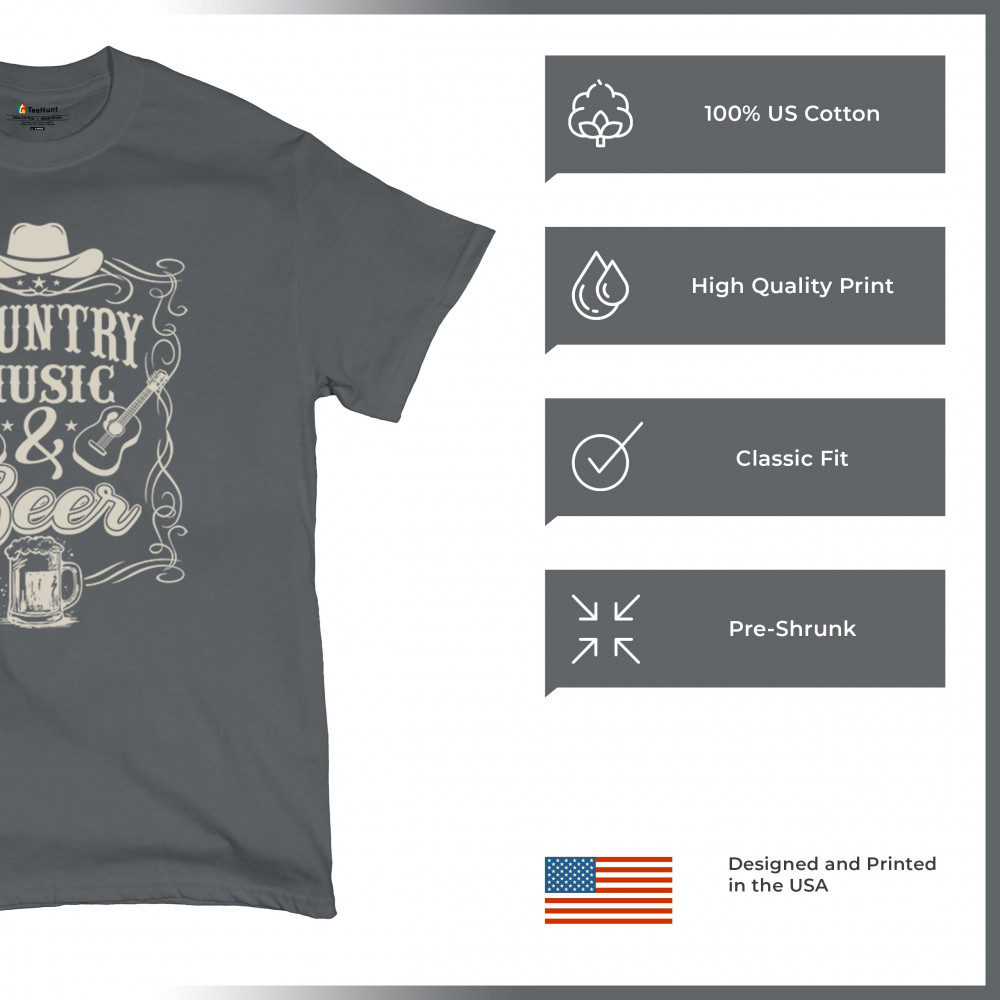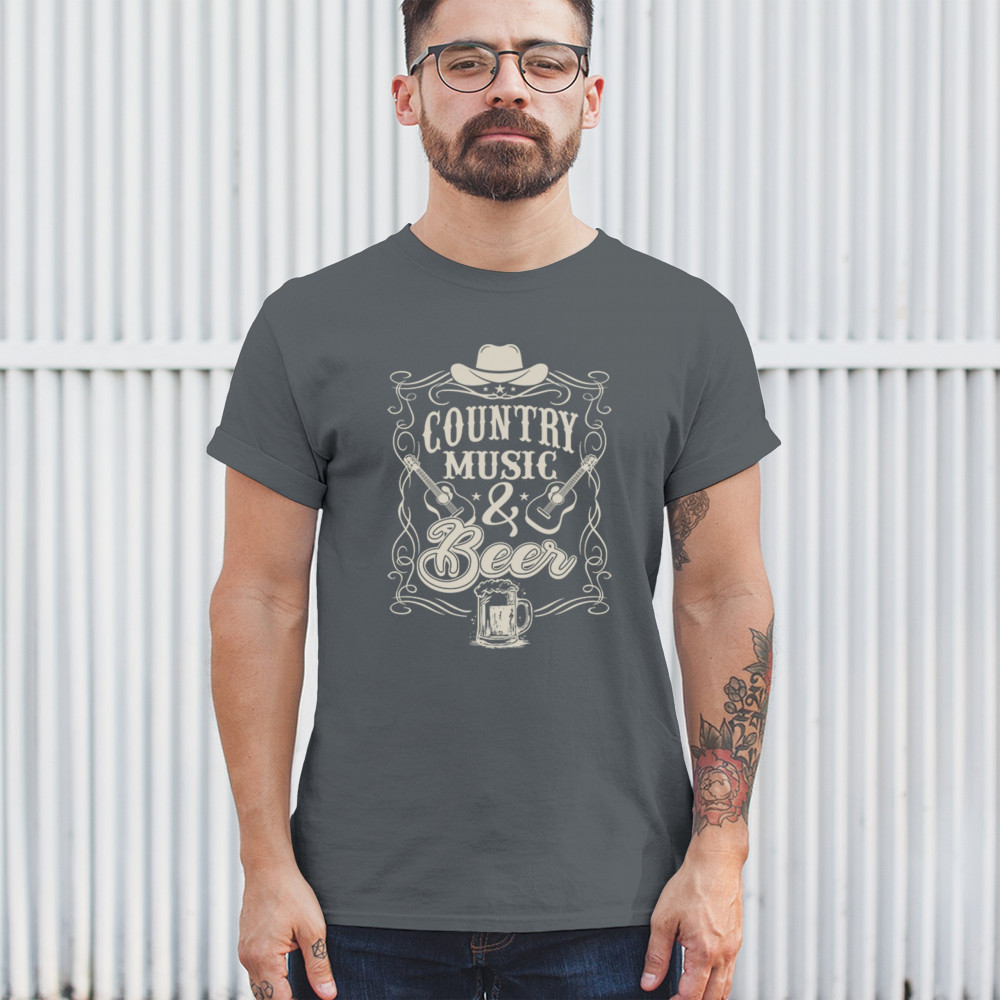 Channel your inner country star with this vintage-style design featuring guitars, a cowboy hat, scroll flourishes, and a cold beer mug. Perfect for fans of country music and beer who love rodeos, tailgates, festivals, or just chilling at the bar. Rustic charm and southern soul meet in one perfect print.