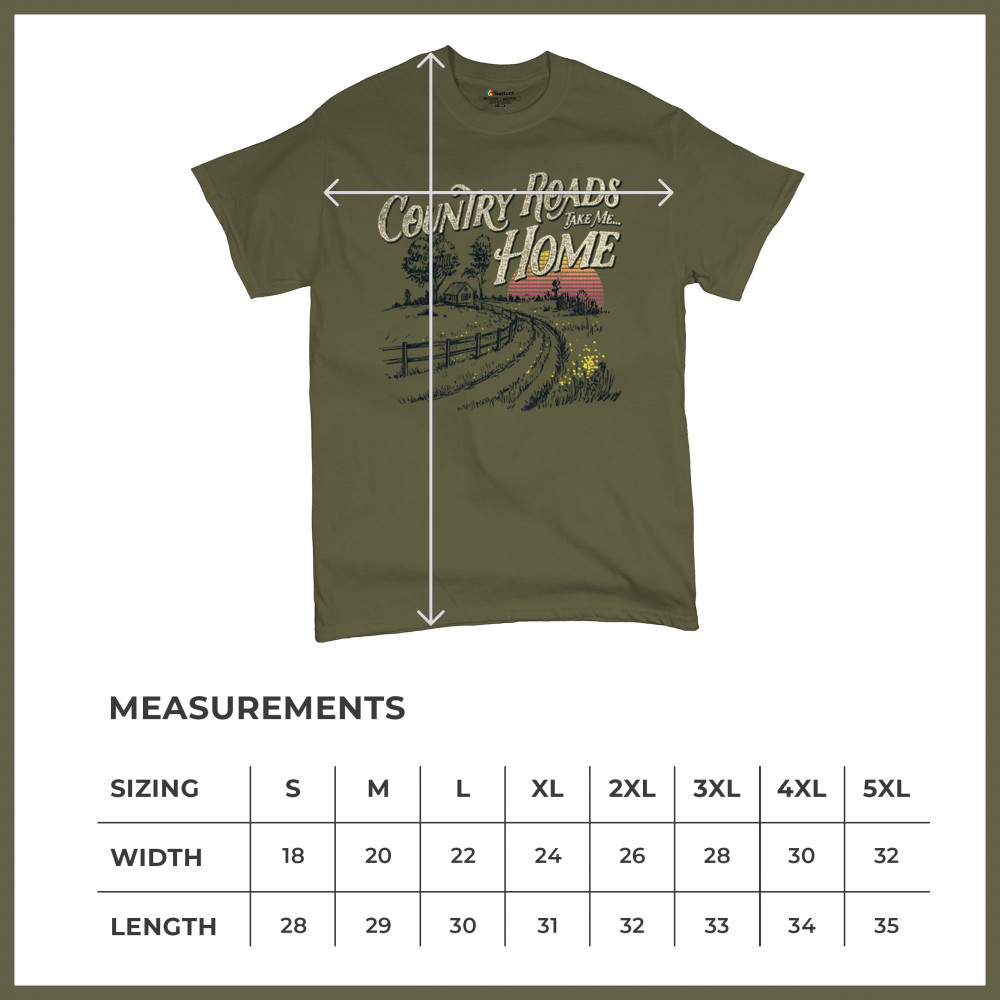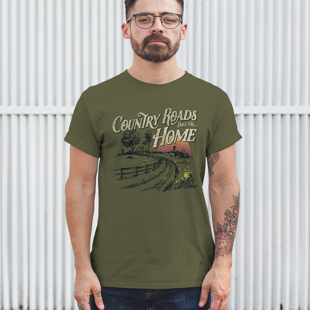 Celebrate your love for small town charm and scenic drives with this nostalgic country roads design. Featuring a bold "Take Me Home" message over a retro-styled sunset, it’s ideal for road trips, summer nights, fairs, concerts, and rural adventures. Let your wanderlust and country soul shine in every mile.