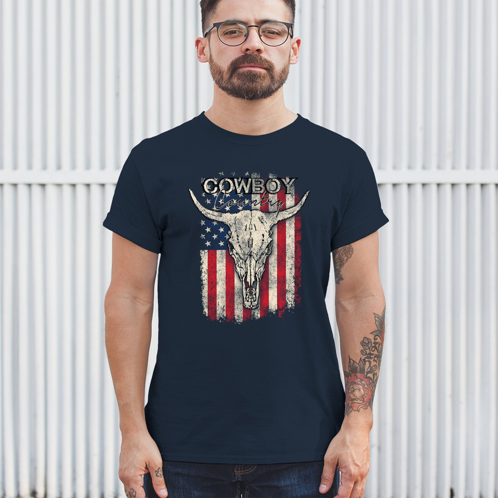 Celebrate western heritage with the Cowboy Country steer skull design, layered over a distressed American flag. This artwork embodies rustic Americana, rodeo style, and desert vibes. Perfect for cowboy décor lovers, ranch life enthusiasts, and those drawn to the wild west’s grit and prairie aesthetic. Wear your frontier spirit proudly.
