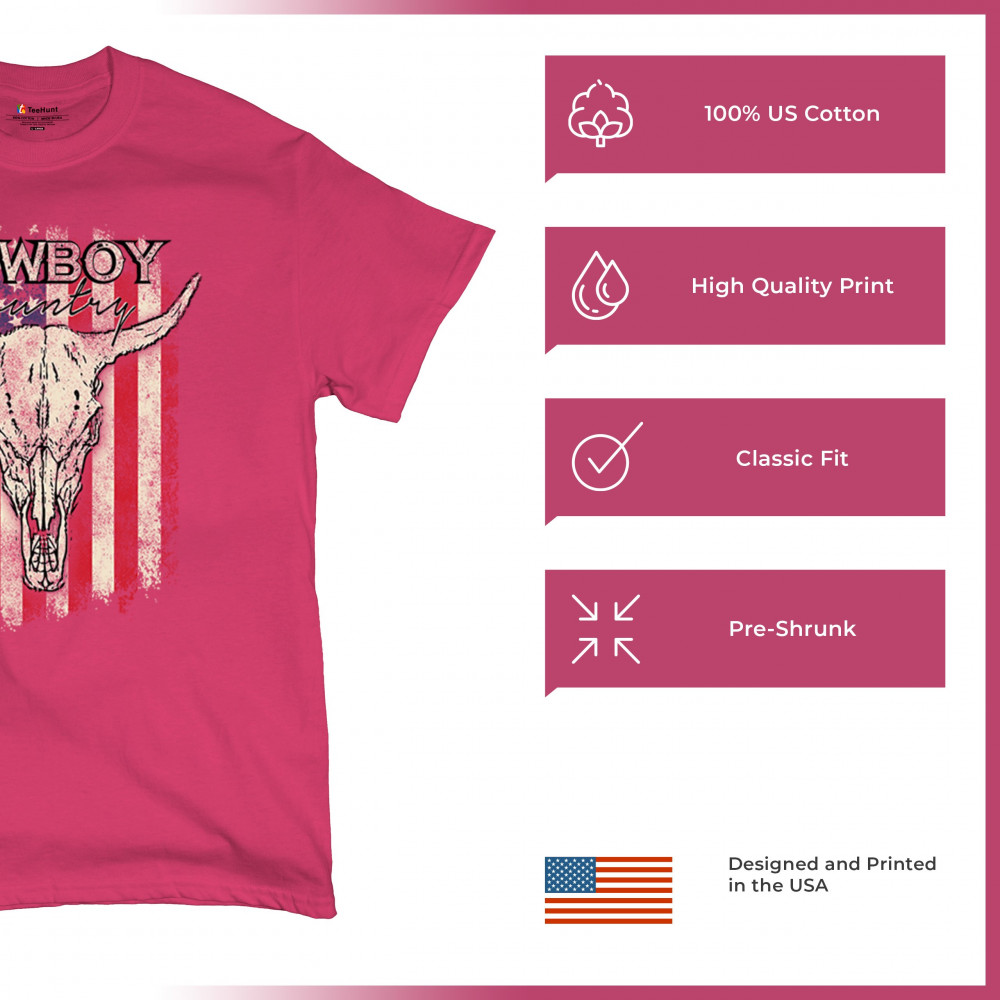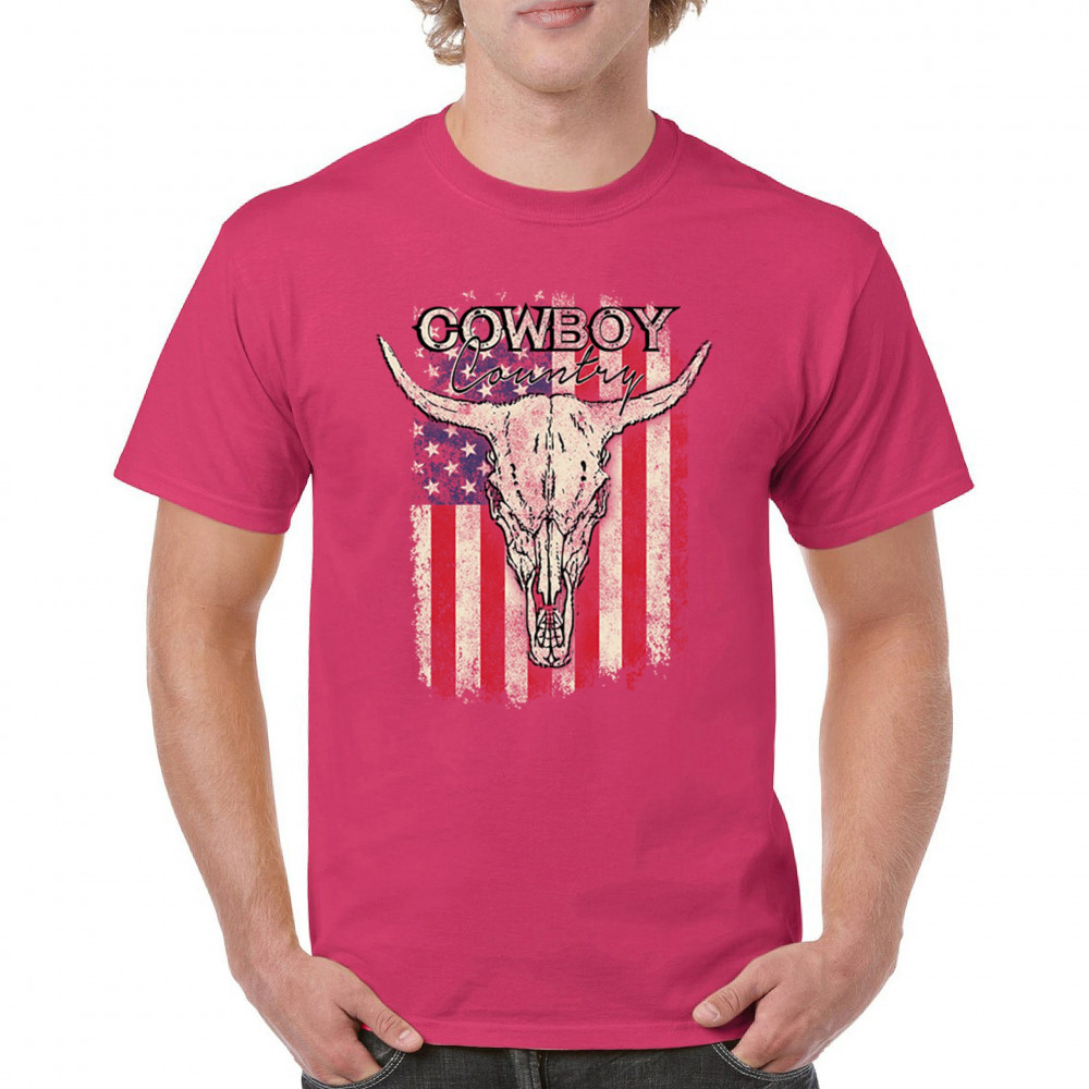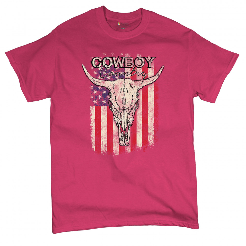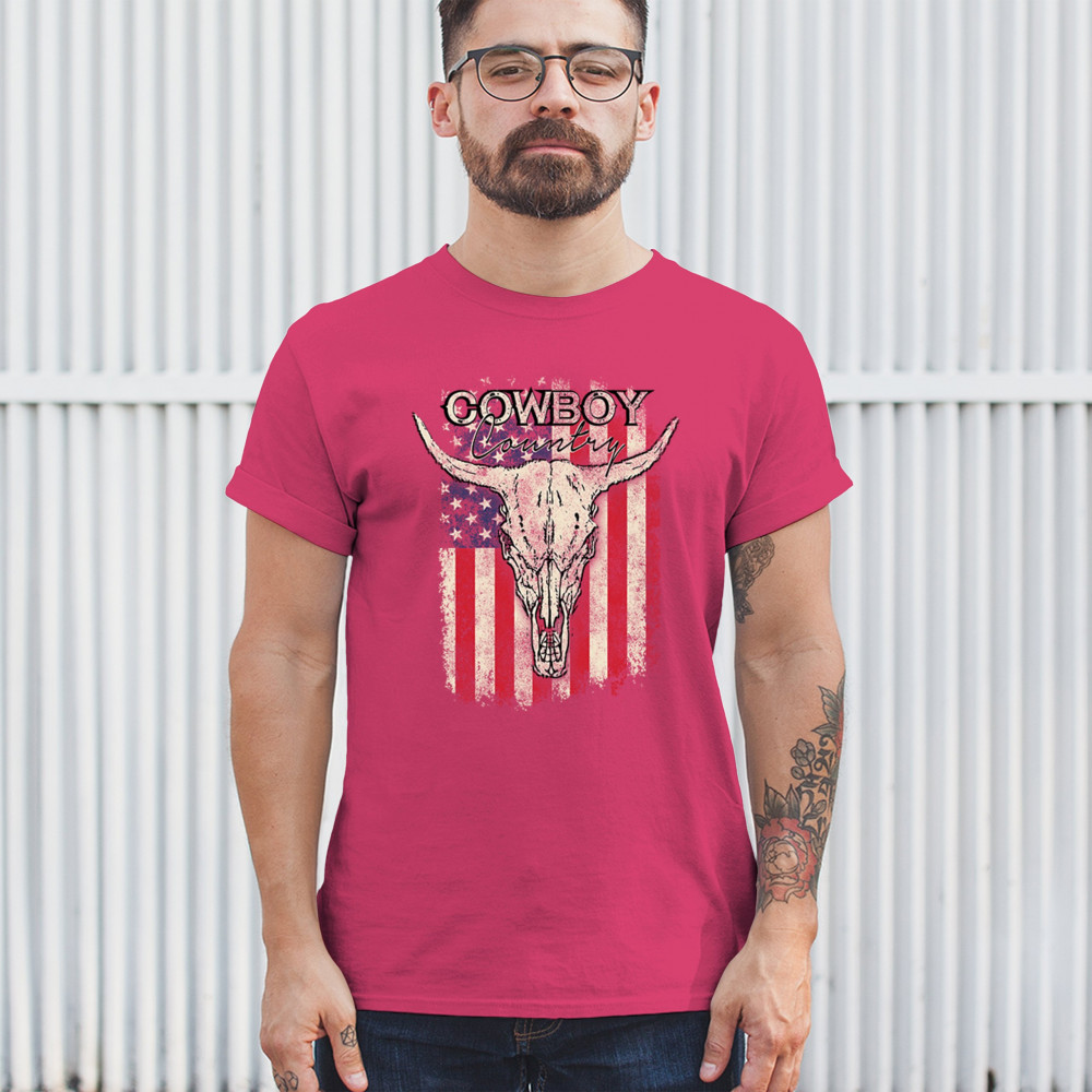 Cowboy Country steer skull design fuses rustic Americana, rodeo style, western heritage, and desert vibes for true frontier spirit.