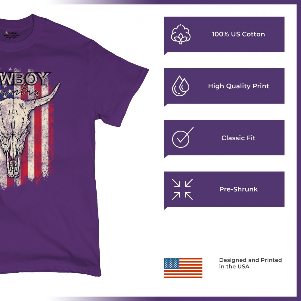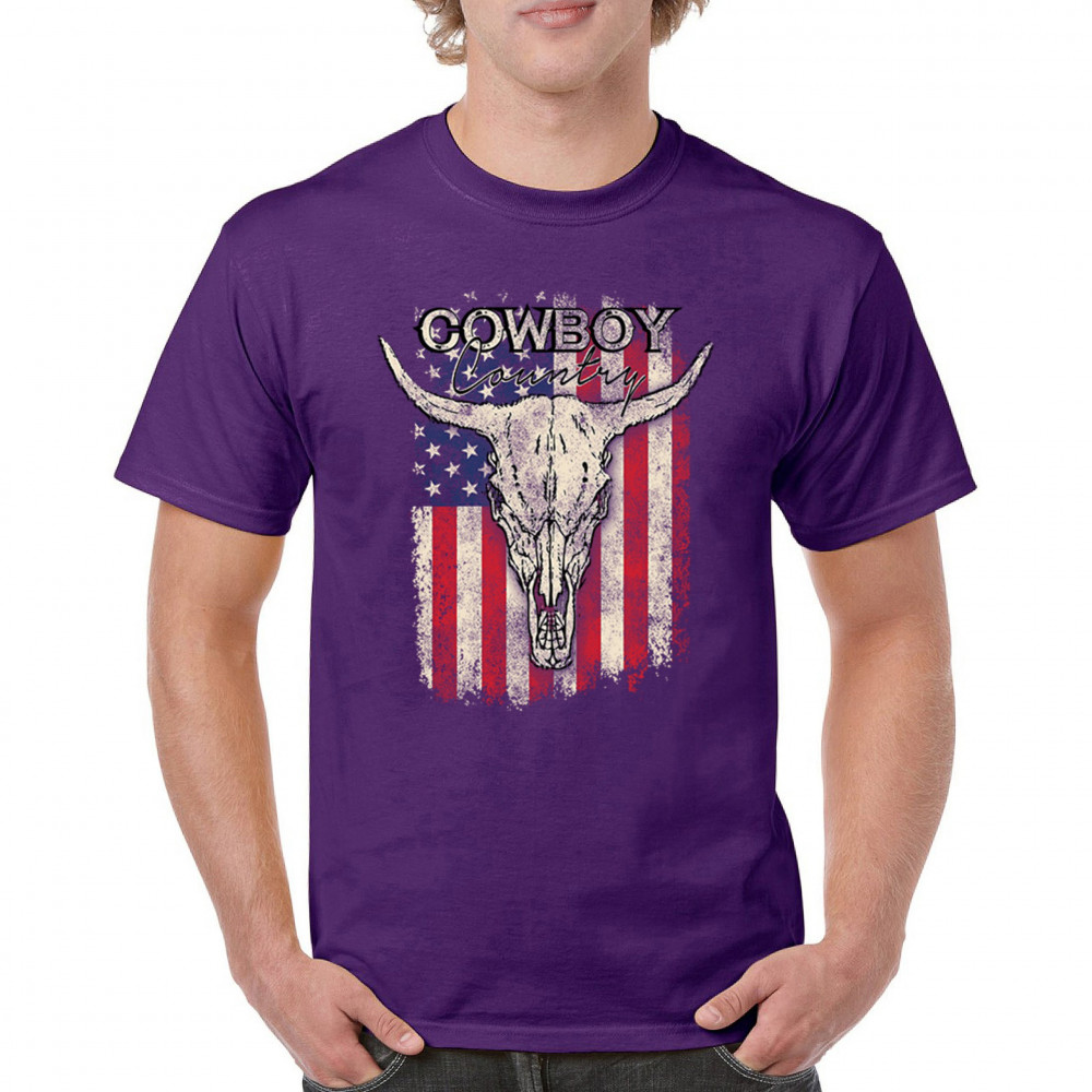 Cowboy Country steer skull design fuses rustic Americana, rodeo style, western heritage, and desert vibes for true frontier spirit.
