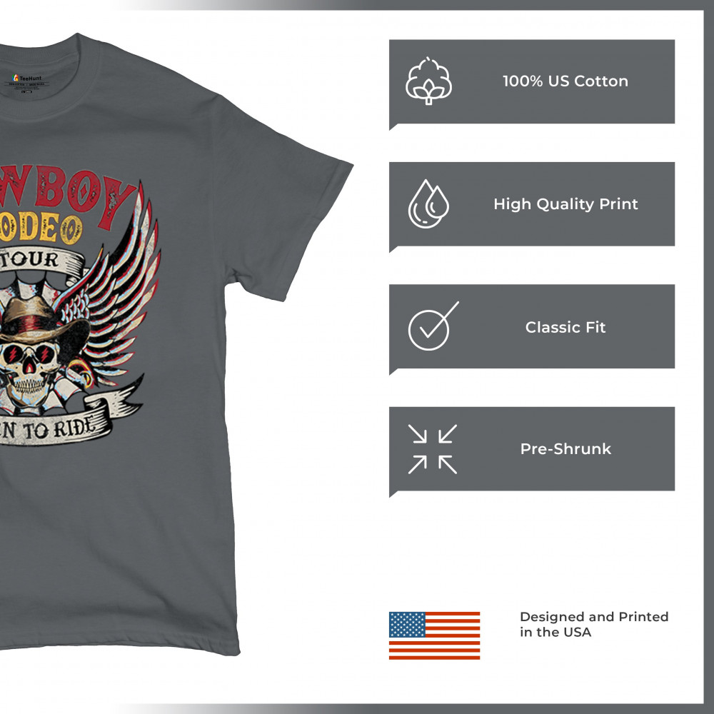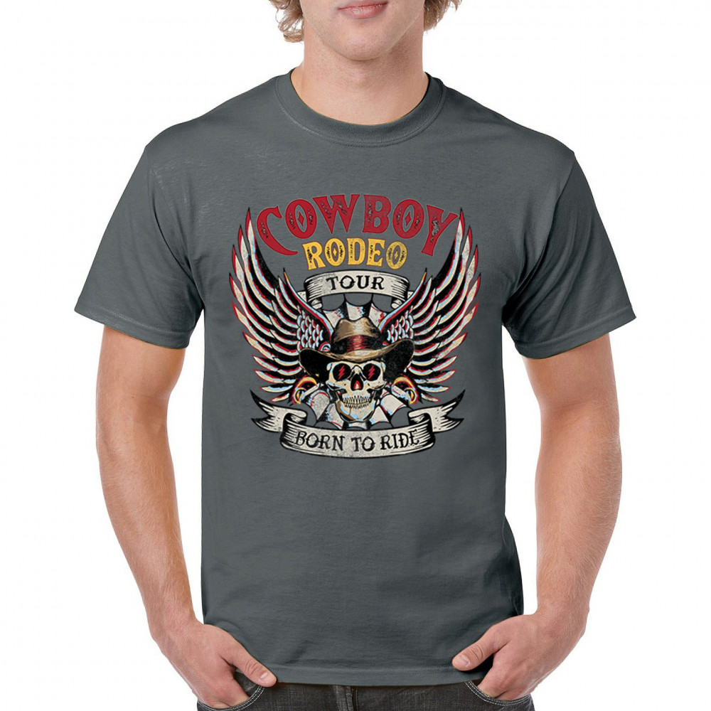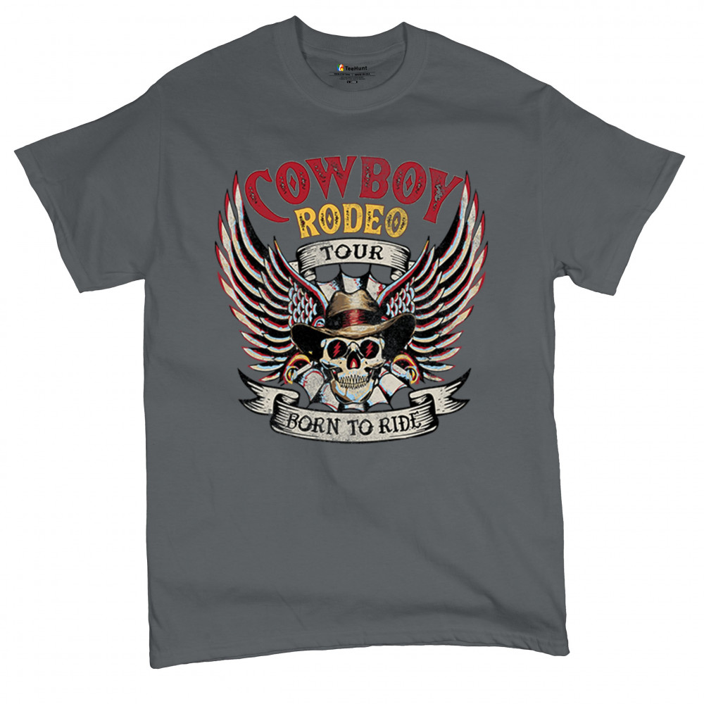 Cowboy Rodeo Tour “Born to Ride†design with skull, wings, and western grit. Built for riders, rebels, and rodeo fans who live wild.