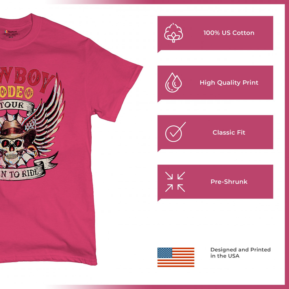 Cowboy Rodeo Tour “Born to Ride†design with skull, wings, and western grit. Built for riders, rebels, and rodeo fans who live wild.