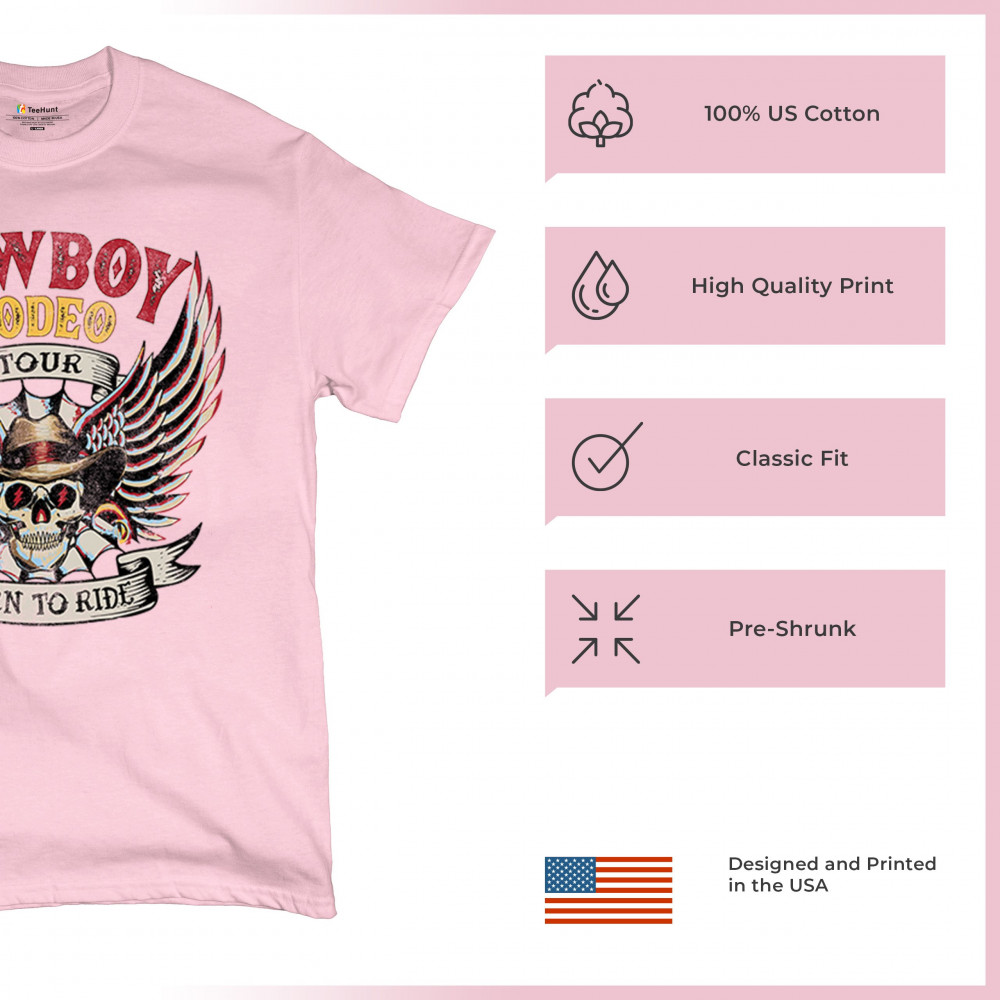 Cowboy Rodeo Tour “Born to Ride†design with skull, wings, and western grit. Built for riders, rebels, and rodeo fans who live wild.