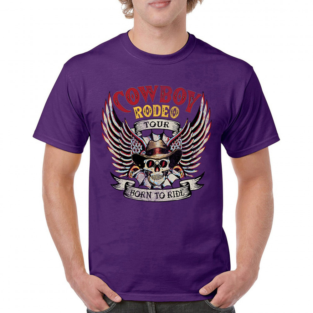 Cowboy Rodeo Tour “Born to Ride†design with skull, wings, and western grit. Built for riders, rebels, and rodeo fans who live wild.