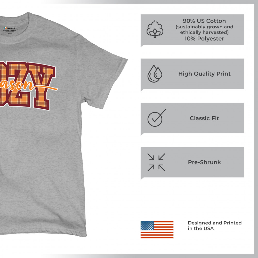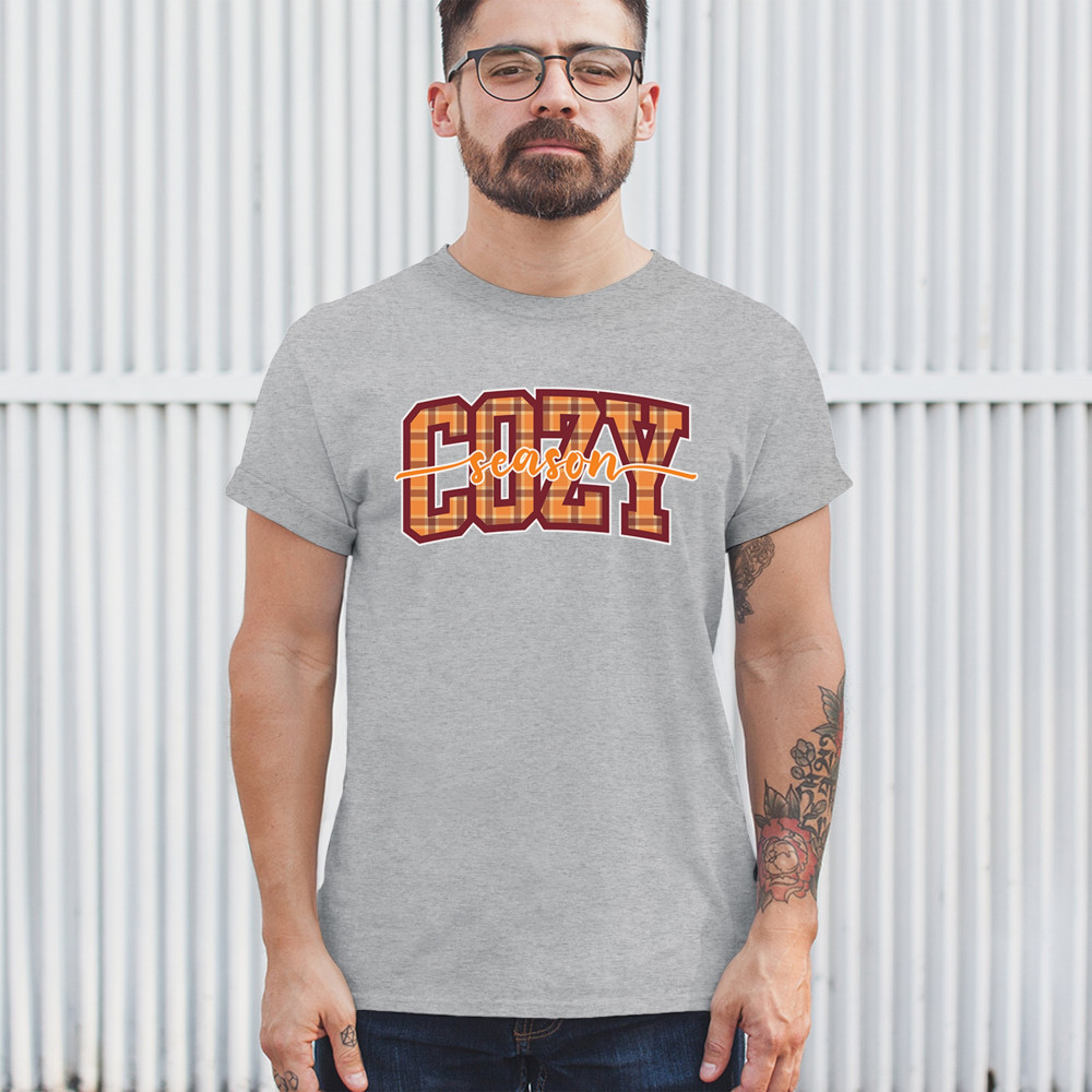The "Cozy Season" plaid design is the perfect way to celebrate your love for all things autumn. With warm hues and a charming script, this print embodies the comfort and relaxation of the season. Whether you're spending chilly days at home or embracing the outdoor fall beauty, this design fits effortlessly into your wardrobe. It's an ideal gift for friends and family who appreciate the simple joys of autumn, including warm drinks, cozy sweaters, and the crispness of fall air.