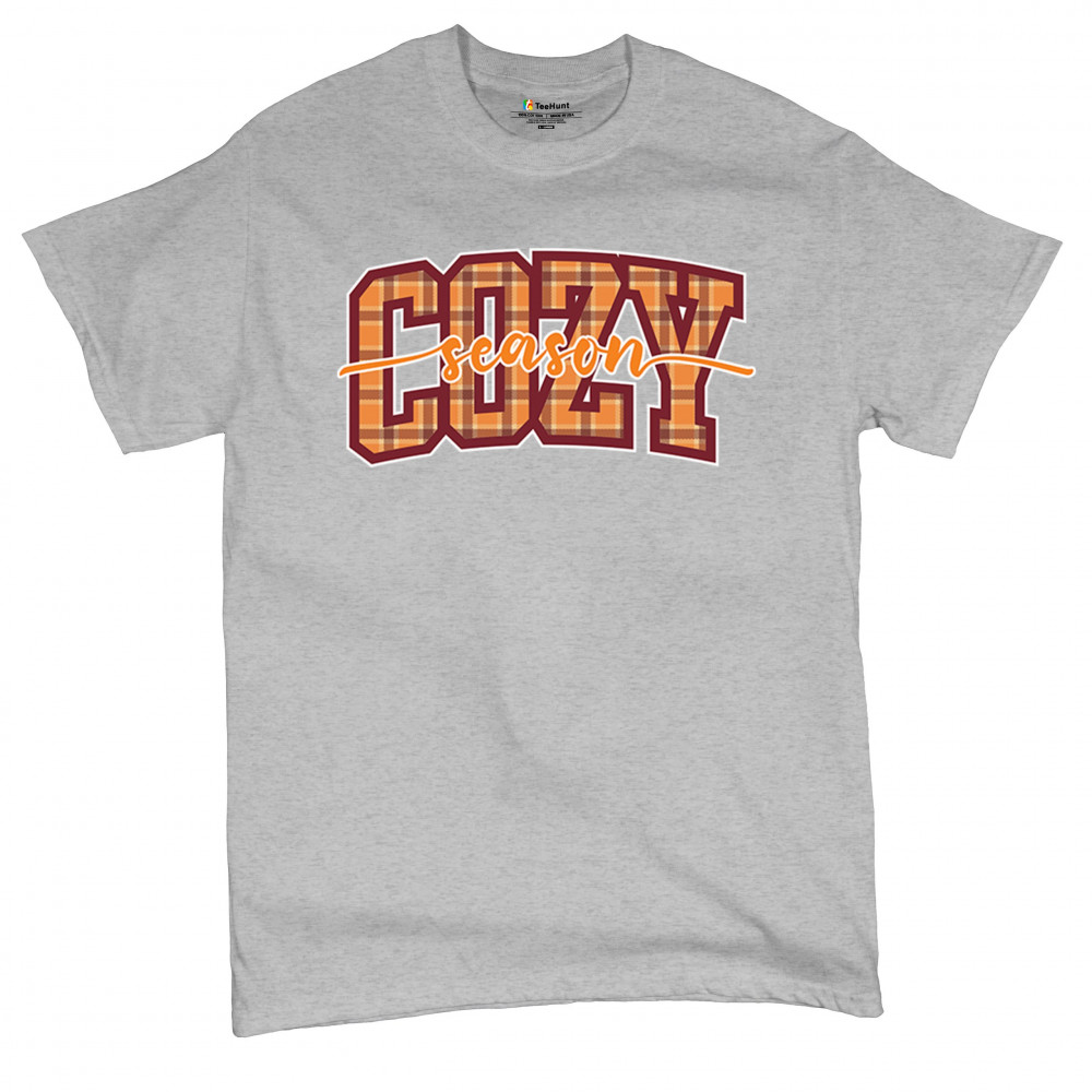 Celebrate fall with this "Cozy Season" plaid design. Perfect for autumn lovers who cherish cozy days, warm drinks, and the beauty of the season.