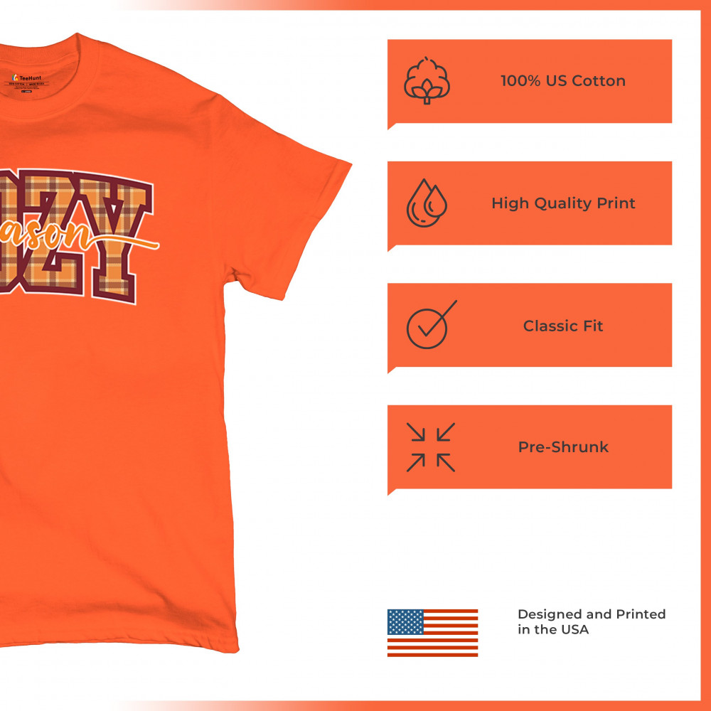 Celebrate fall with this "Cozy Season" plaid design. Perfect for autumn lovers who cherish cozy days, warm drinks, and the beauty of the season.
