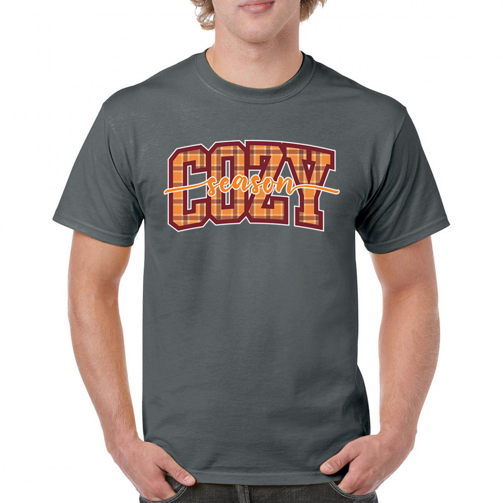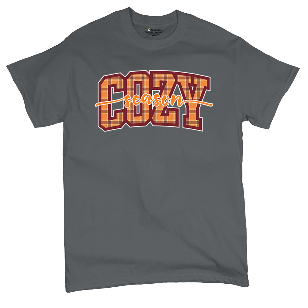 Celebrate fall with this "Cozy Season" plaid design. Perfect for autumn lovers who cherish cozy days, warm drinks, and the beauty of the season.