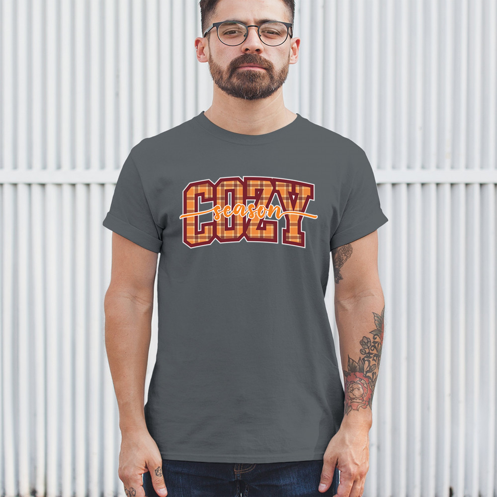 The "Cozy Season" plaid design is the perfect way to celebrate your love for all things autumn. With warm hues and a charming script, this print embodies the comfort and relaxation of the season. Whether you're spending chilly days at home or embracing the outdoor fall beauty, this design fits effortlessly into your wardrobe. It's an ideal gift for friends and family who appreciate the simple joys of autumn, including warm drinks, cozy sweaters, and the crispness of fall air.